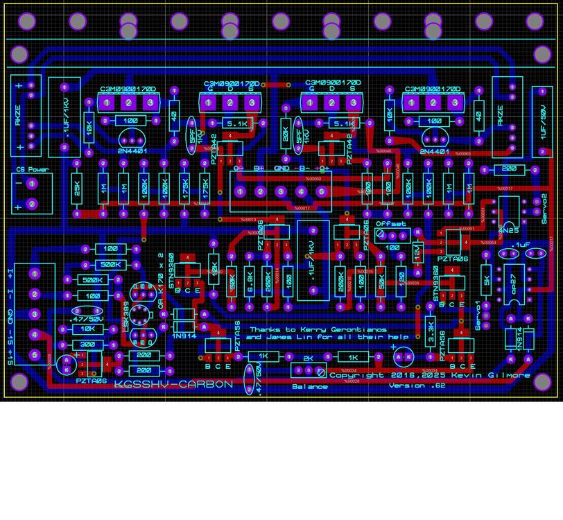 The one-trimmer control board above adjusted voltage for both 2A3 and 300B at the same time. No way to adjust voltage for one without effecting the other. I assumed that it should be possible to set voltages for one tube and have the other unaffected. But as my brain isn’t as fast as the two comparators in LM2903 I made a test board with seven trimmers. After some trimming back and forth I found one trimmer that adjusted voltage for both tubes and an another that just affected 300B, So, next is a two-trimmer control board, same size as the one-trimmer. If you don’t understand how a circuit works, the trial-and-error method might help you.2 points