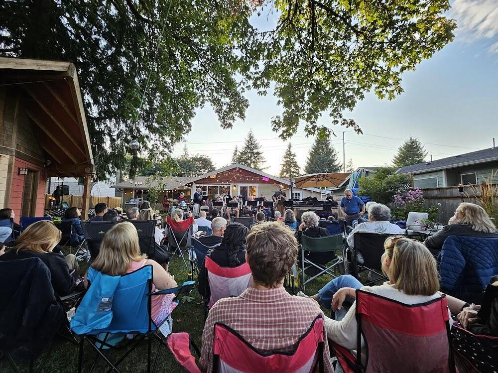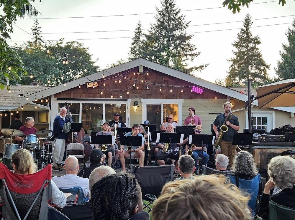 Got to see a jazz orchestra play at a house party (the house of the drummer; when did drummers get houses and not cardboard boxes to live in? And there was this bonkers 50ft radius tree swing he built for his kids (and it's *totally* not a sex swing, I hear). It's pretty bonkers. Was hit up about this just hours before it started; such a neat thing to stumble across. I knew 2.5ish people b4 I went there and came out probably having expanded the musician friend group in the area a bit. My kind of people (band nerds.) Such a good time.