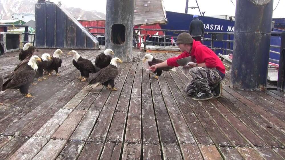 I used to be able to get very close to them in Dutch Harbor, AK. There are no trees, and they're attracted to the fishing boats. Not my pic, but...