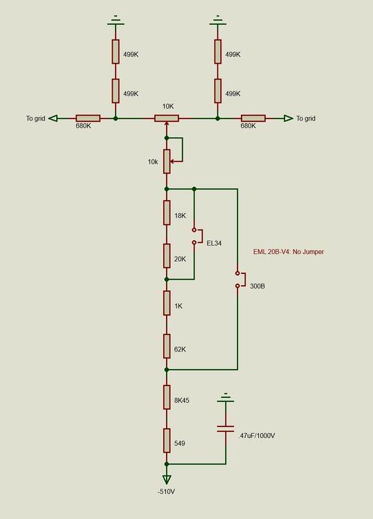 Schematics auto switching. Not sure it's accurate, but that's what I've done. New Grid Voltage Control boards. One trimmer for offset and the other for balance so, both sides are controlled simultaneously. Two jumpers. For 300B/2A3, EL34 and EML 20B-V4. Works al right, quite easy to use. The -510V is achieved with help from GRHV 110V supply. Here is one with Hammond 2VA trafo on board - 2.75in x 2in. New idea - servo controlled grid voltage. Okey, I've tried servo controlled Megatron (with solid state CCS) before and that failed... -