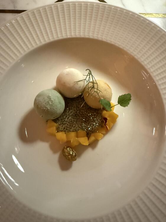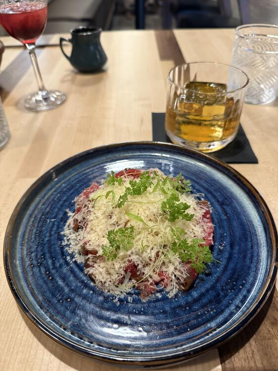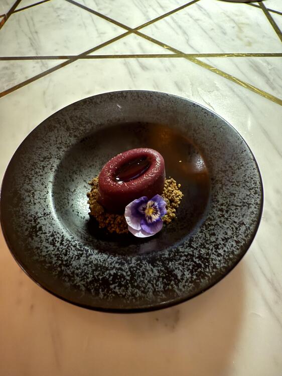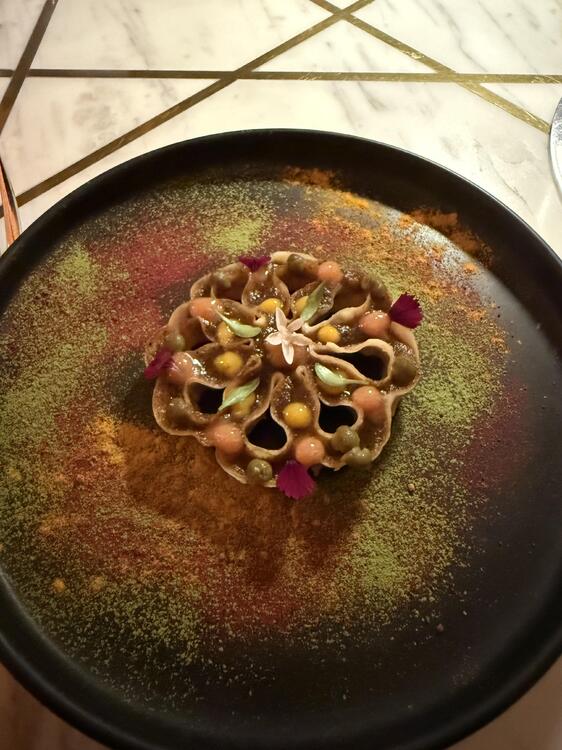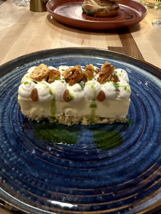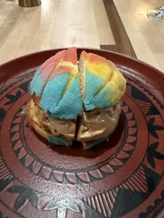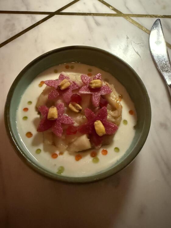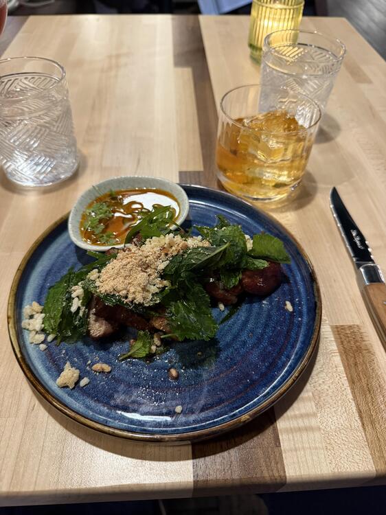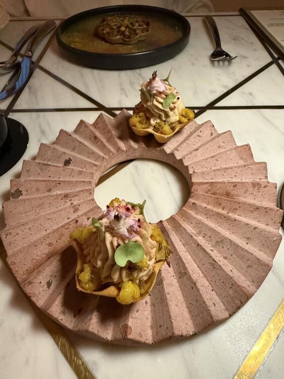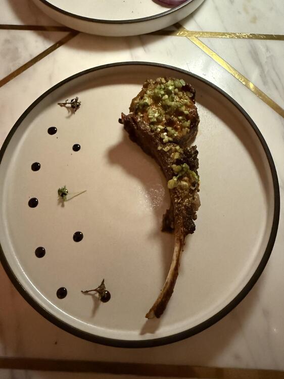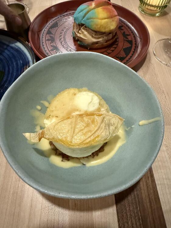 Anniversary dinner at Barbacana in Houston. Our first time and we were very impressed with the service, food and drink. Wagyu carpaccio, a vegetarian dish that was a riff on ramen, pork collar and a few desserts. The Korn, which was sweet and savory was a culinary gem IMHO (brittle on top one). HS