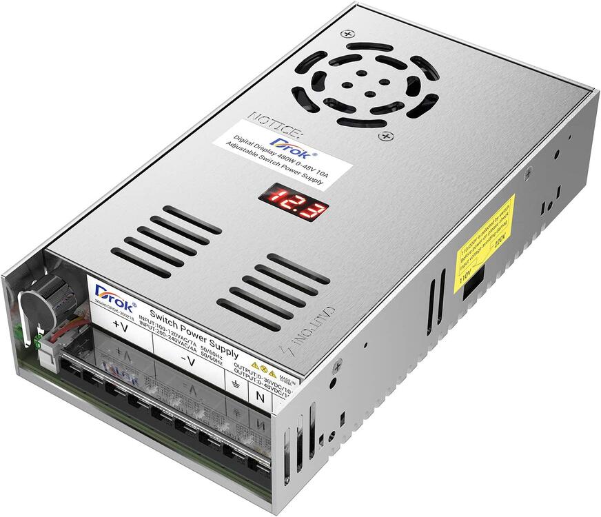 19. i load tested the drok 48v 10a power supply and only got up to 27v at 10a with a rigol dl3021a dc electronic load tester here is the 1a steps (edit: forgot to set the drok input voltage setting to 115 vice 230) i was able to get 35 volts at 8 amps before reaching my load tester limit. anps volts 1a 36v 2a 35v 3a 34v 4a 33v 5a 32.6v 6a 32v 7a 31v 8a 30v 9a 28v 10a 27v then i connected a grlv with a 2k resistor to output 23.3v and load tested it amps volts 1a 23.3v 2a 23.2v 3a 23.2v 4a 23.1v 5a 23.1v 6a 23.0v 7a 23.0v 8a 22.9v 9a 22.9v 10a 22.8v