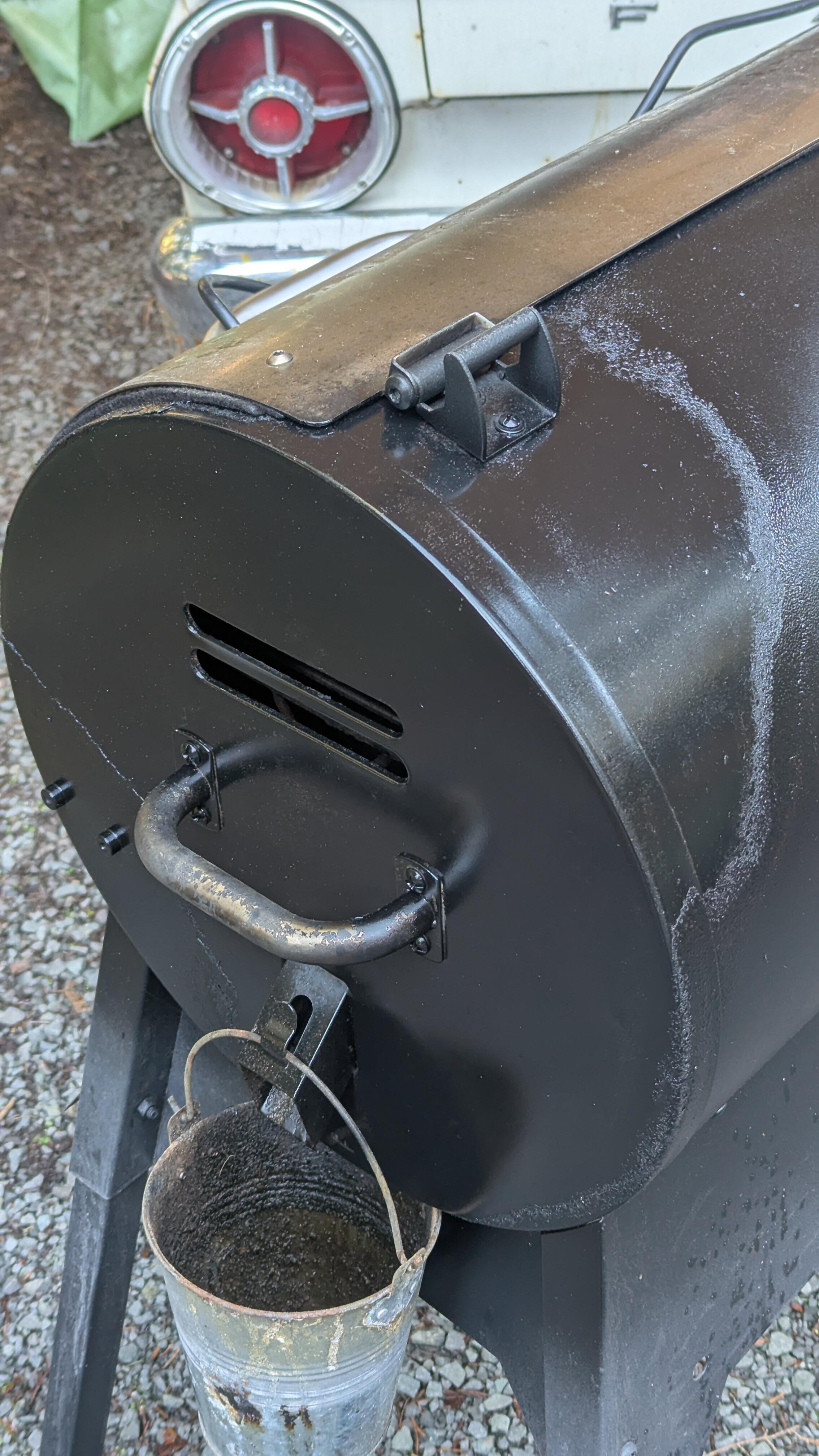 Couple of coats of high temp engine paint. Looks like poop, but it is protected and ready to go. Ran it at max temp for a while to cook of any vapors, then smoked a salmon. I'm back...