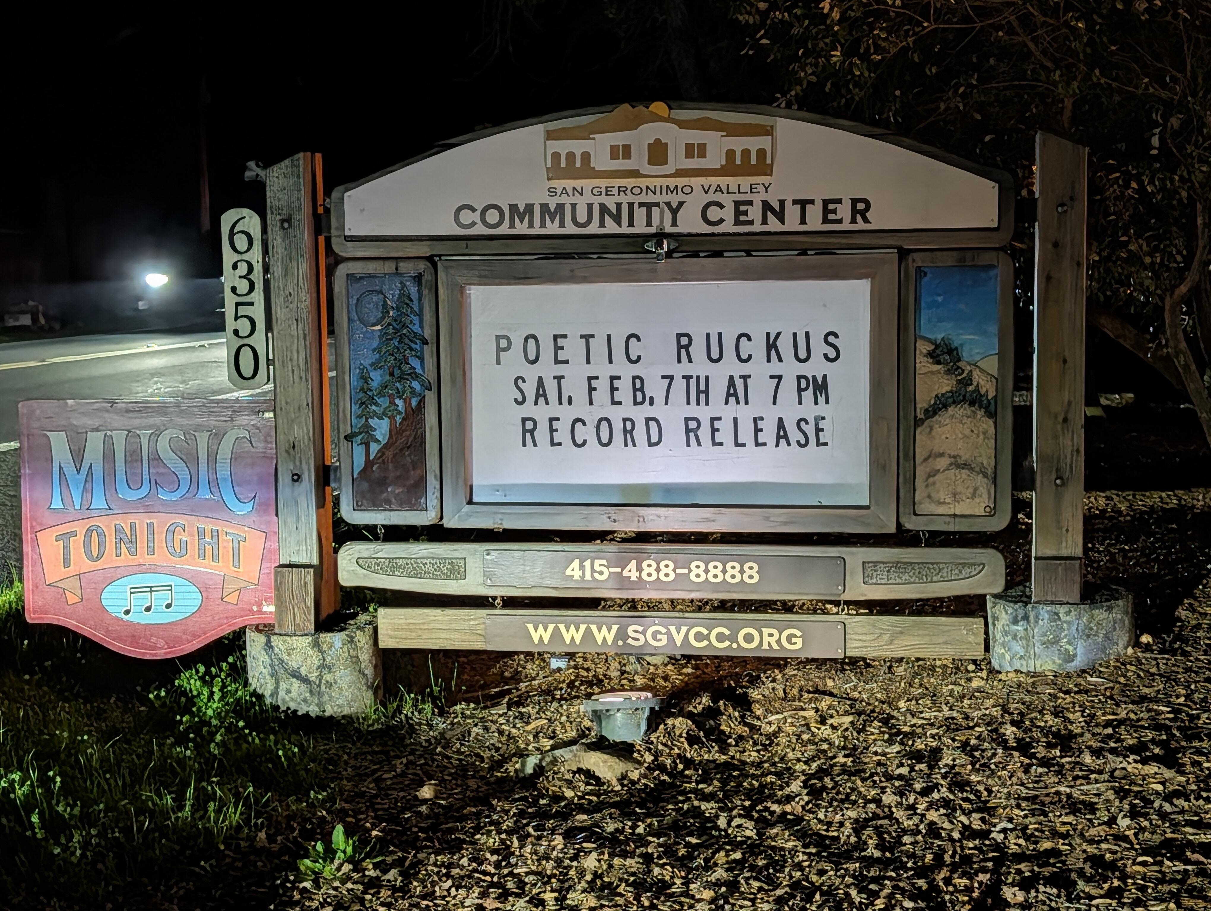 Tonight, in the dark of West Marin. https://poeticruckus.org/ And their latest release, on vinyl, no less.
