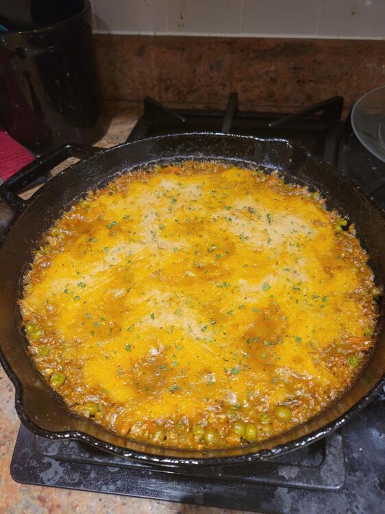 Shepherd's Pie...sort of -- used ground turkey instead of lamb and beef culinary stock, but otherwise...NAILED IT! It came out delicious. Didn't overwhelm with any one particular spice (I'm looking at you, the usual suspects garlic and black pepper), but it was sweet and savory and the carrots came out perfectly al dente...just...(chef's kiss)... Yes, I realize I'm kissing myself.