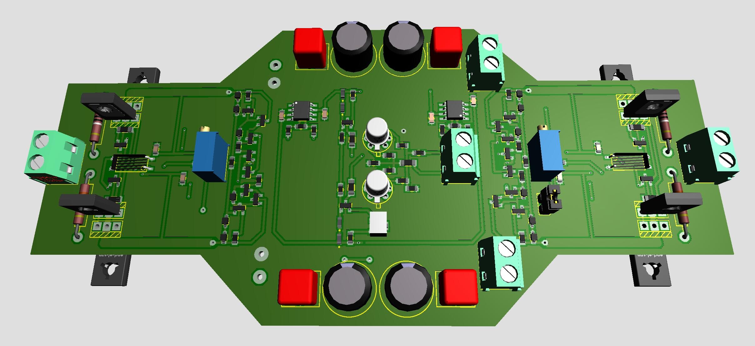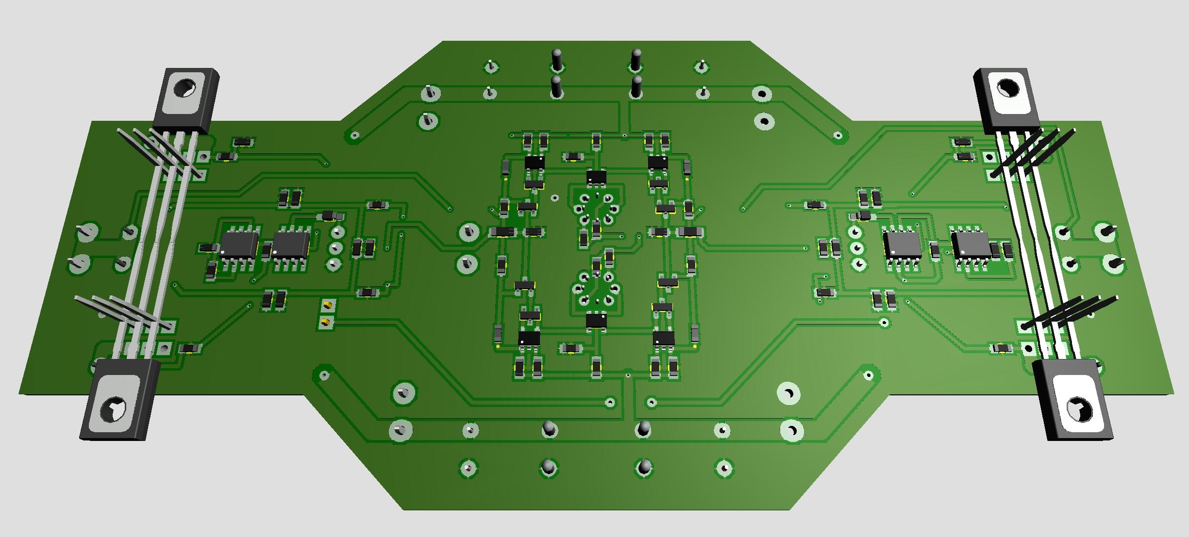 No particular reason behind the jfets, aside I like the to-71 package and that it’s fairly easy to build the layout around them SMD transistors because they are small. I had to decrease current at some locations to reduce heat. I see this amplifier merely as an experiment. I wanted to test if it was possible to make a small board. The bias servo is probably needed while moving from heatsinked MJExxx to small smd transistors. I believe the bias servo previously posted by Kevin, with dual op amps, is preferred. So, another experimental board… - Today
