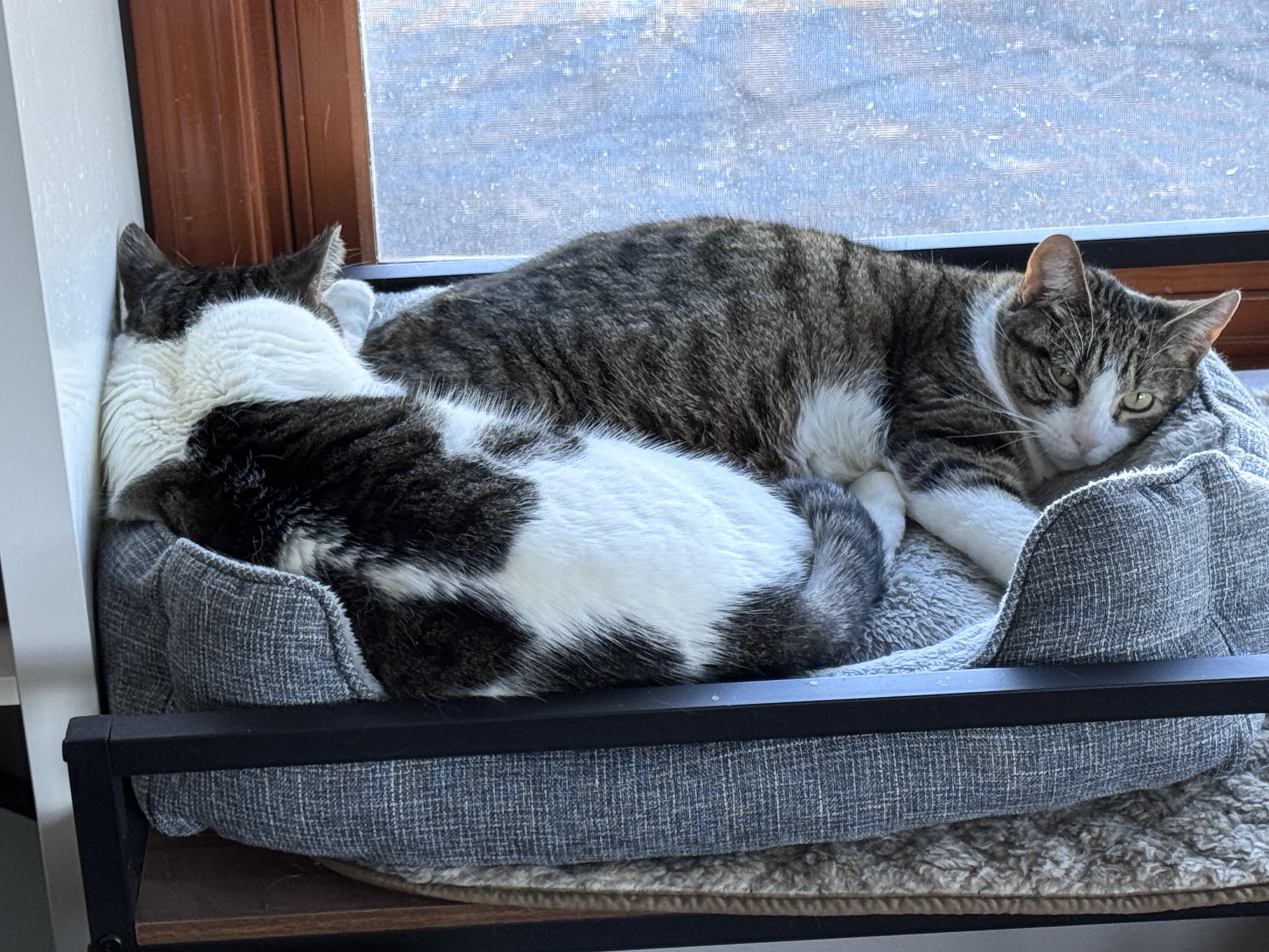 Yumi was out of town for 8 days last week. I guess the cats were so lonely they started bonding (they are from the same litter - 2018). This never happens!