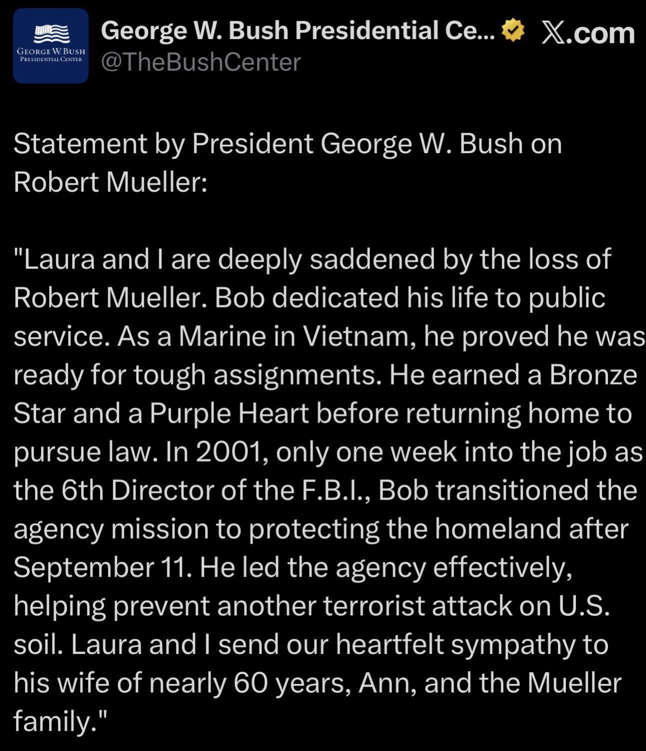 This is how I found out Robert Mueller died today.