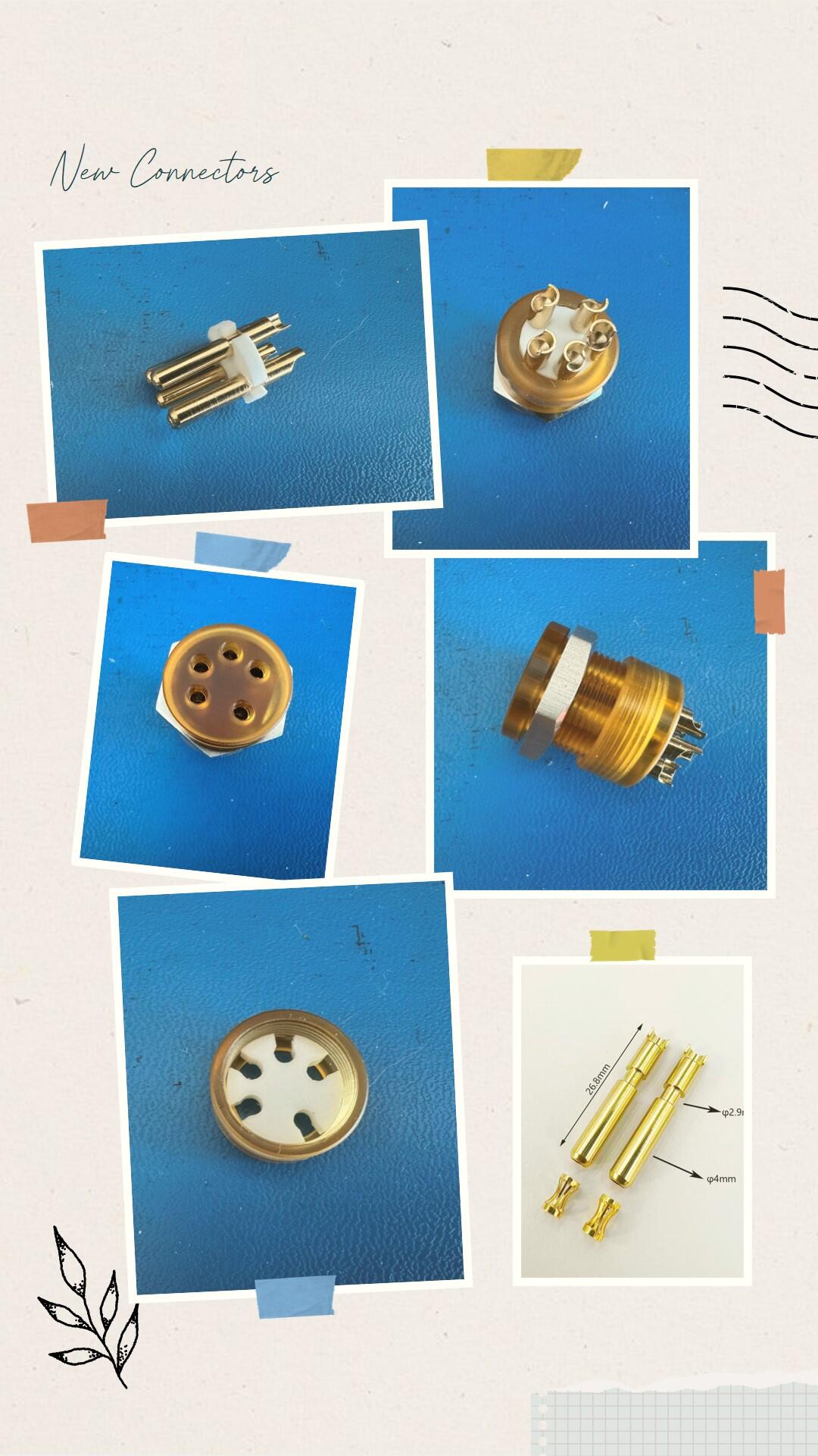 I found a 2.3mm receptacle contact with a lantern-type spring insert, which should be able to tolerate some radial misalignment without too much change in the mating force. I've been toying with the idea of a multi-part jack. The pin center diameter was chosen to be 10.75mm in order to accommodate the Stax, the Hifiman and the less accurate Kaldas plug with the acrylic base. The contact retainer washer is made from Teflon which also gives a bit of flexibility. The connector and shell can be made from PEEK but I can't help trying the PEI (Ultem). Its translucent color matches with the gold plated contacts quite well. There are two variations of the design, with the retainer sandwiched between the shell and the cap, and with the retainer secured flush with the cap. The latter requires better precision from machining.