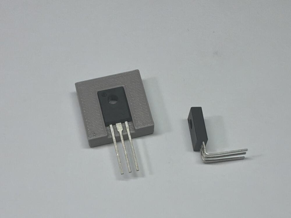 I have chosen Omron G6KU-2F relays, 5.2 mm high. Present space between pcb and heat sink is 9 mm. Can be increase with 1.5 mm. Use of a mica insulator will add another 2 mm. According to datasheet allowed ambient temperature is up to 85 degrees Celsius. Small 3D printed tool to bend output transistor legs. Makes my life easier. Intend to send gerbers to fabhouse in a few days. -
