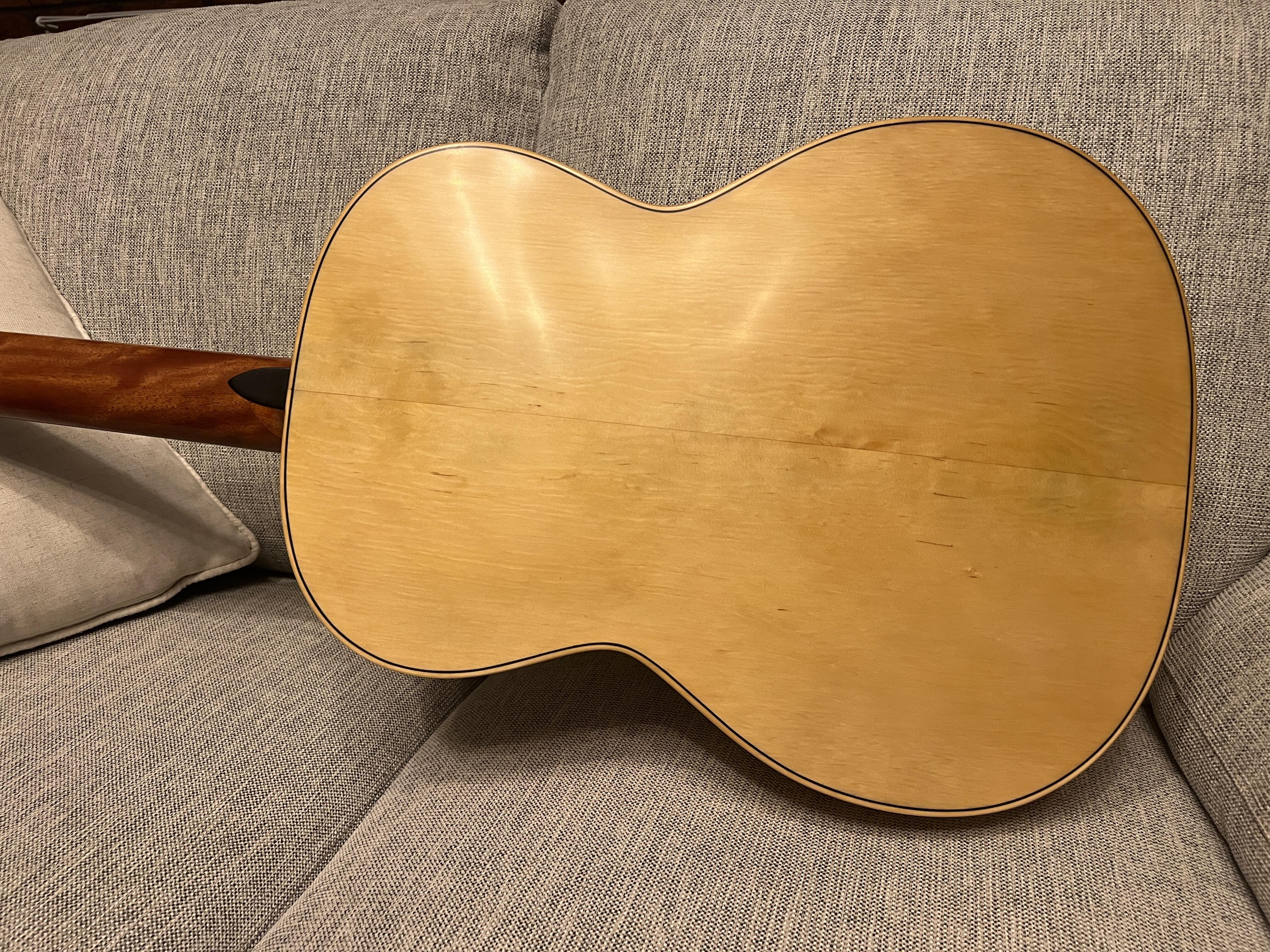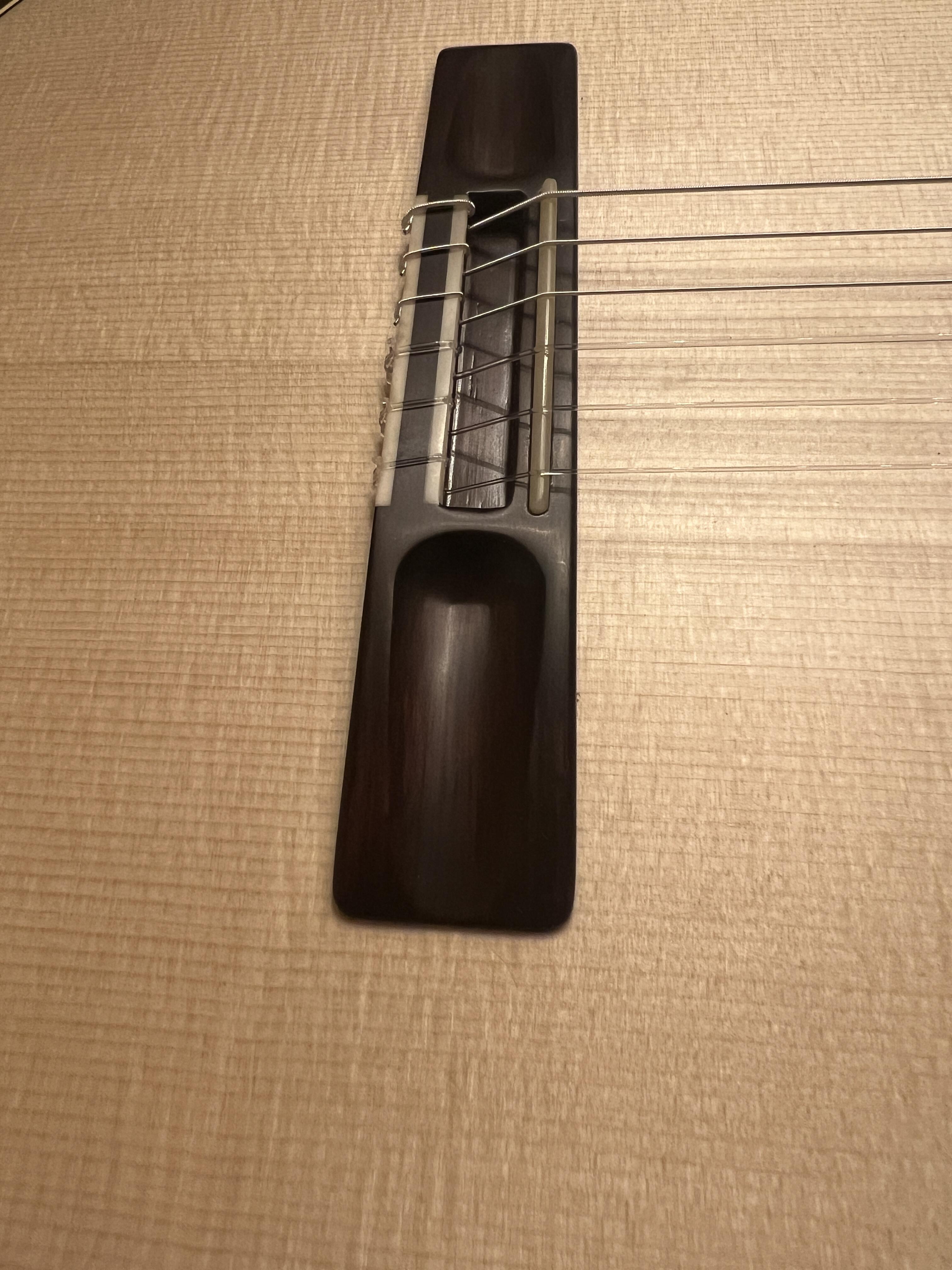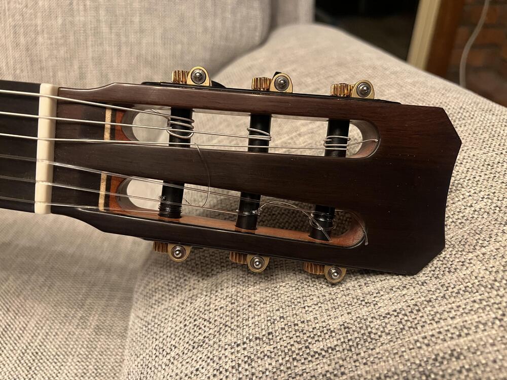 This is my latest to add to the growing collection, I think a may have a problem... oh well. This is a Simon Marty guitar, it features his innovative radial bracing, the back and sides are ancient Huon pine, salvaged before a dam flooded a valley, estimated between 1000 -1500 years old, the neck is Australian rosewood and the top is spruce.