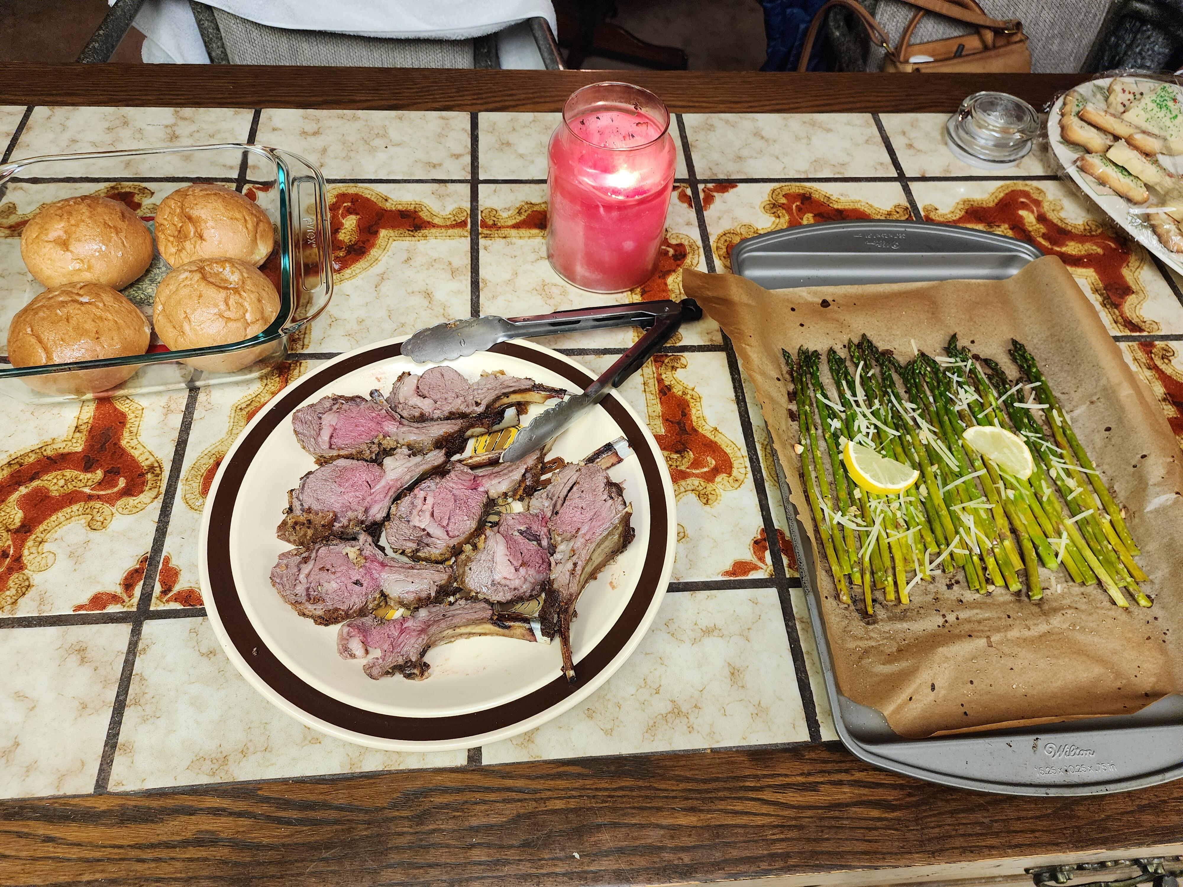 Rack of lamb at the lake house tonight. Everything turned out perfect. Food coma, then pecan pie if I can fit it in.