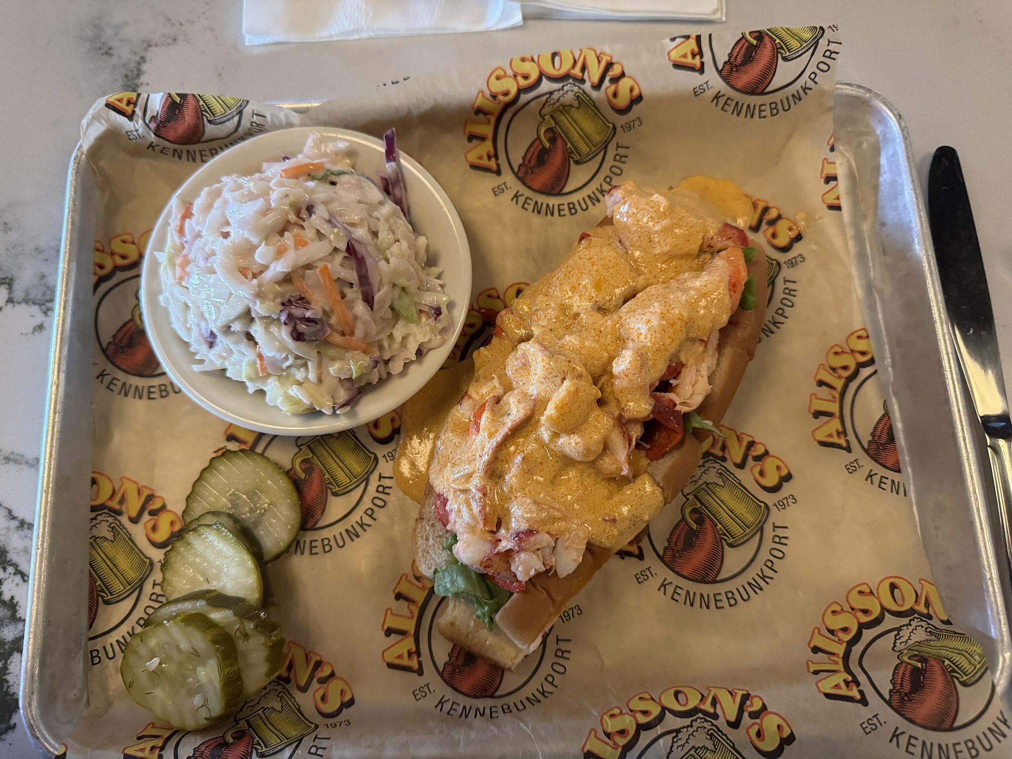 Up at the Maine condo this weekend, a cloudy & cold day turned into a stunner of a beautiful one! Went into Kennebunkport and next to no one was there. Had a great walk around, bought some arty shit, and stayed for dinner. Have always enjoyed Alisson's Restaurant for better-than-pub dining, tonight sat at the bar and had a Lagavulin 16 and my favorite of theirs, the Lobster Bisque Lobster Roll. Worth the $, along with a brief chat with a couple folks at the bar.