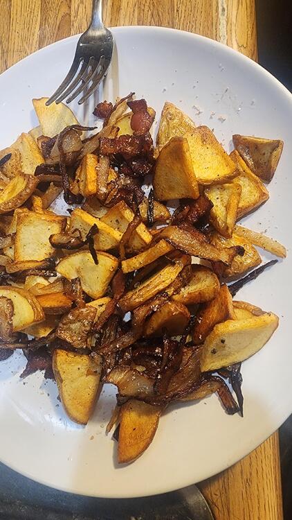 Beef stew. Basically the same as my pot roast, with a few small differences. No shallots, but leaks instead. And 1/2 cup of brandy in the sauce. Delicious!