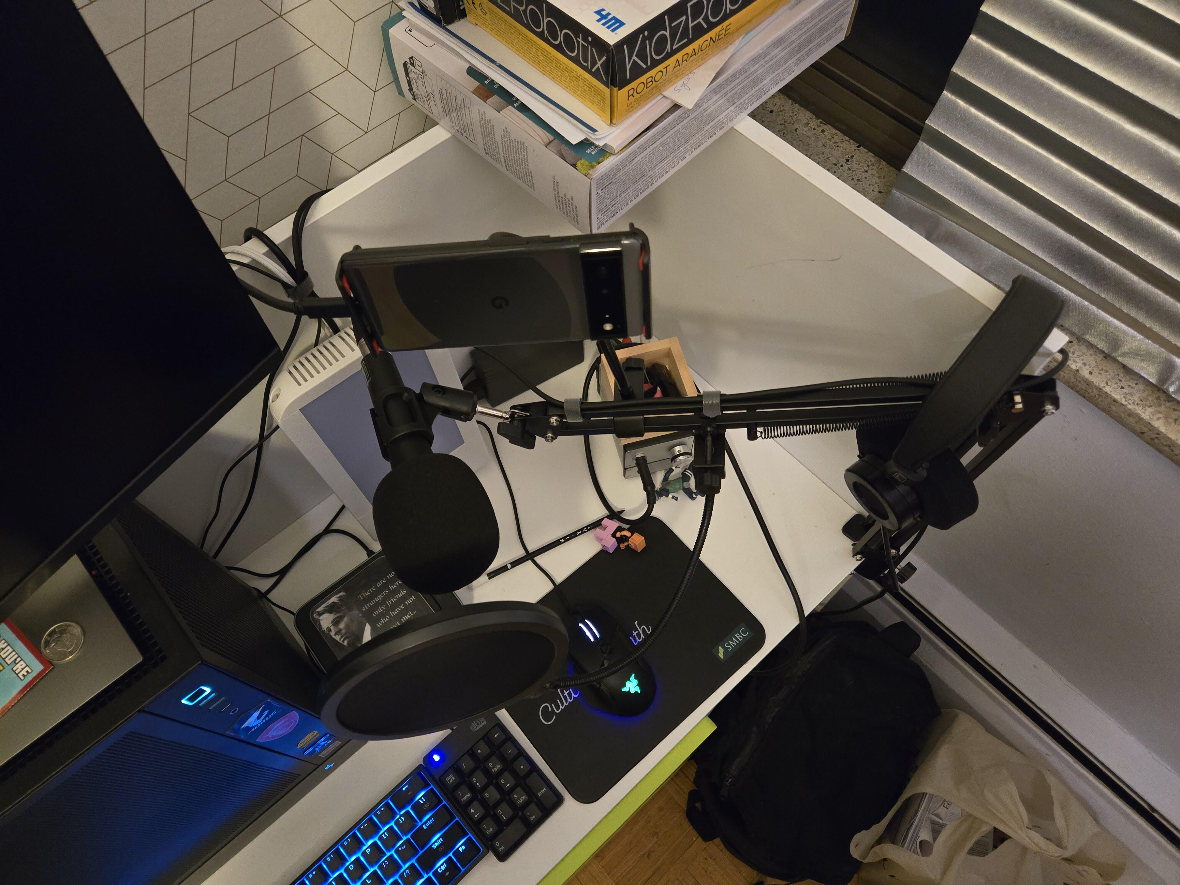 Not sure if this is the right section as it's not in the field, but does this look like a good microphone position for when I'm recording/streaming? Is the pop filter setup correctly? Should I be using the foam cover or is that only for outside/wind? I have my old phone setup as my camera and the pixel 6 does an excellent job. Mostly just wanted the arm to hold the microphone and my phone and to allow me to lower my monitor (the phone used to be setup below it attached to the stand), but it came with some accessories. Came with a shock mount as well but that seems to be for a different (larger diameter) microphone.