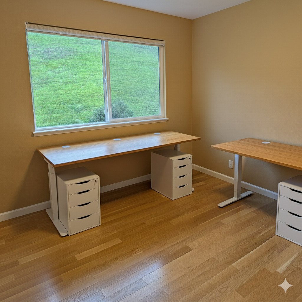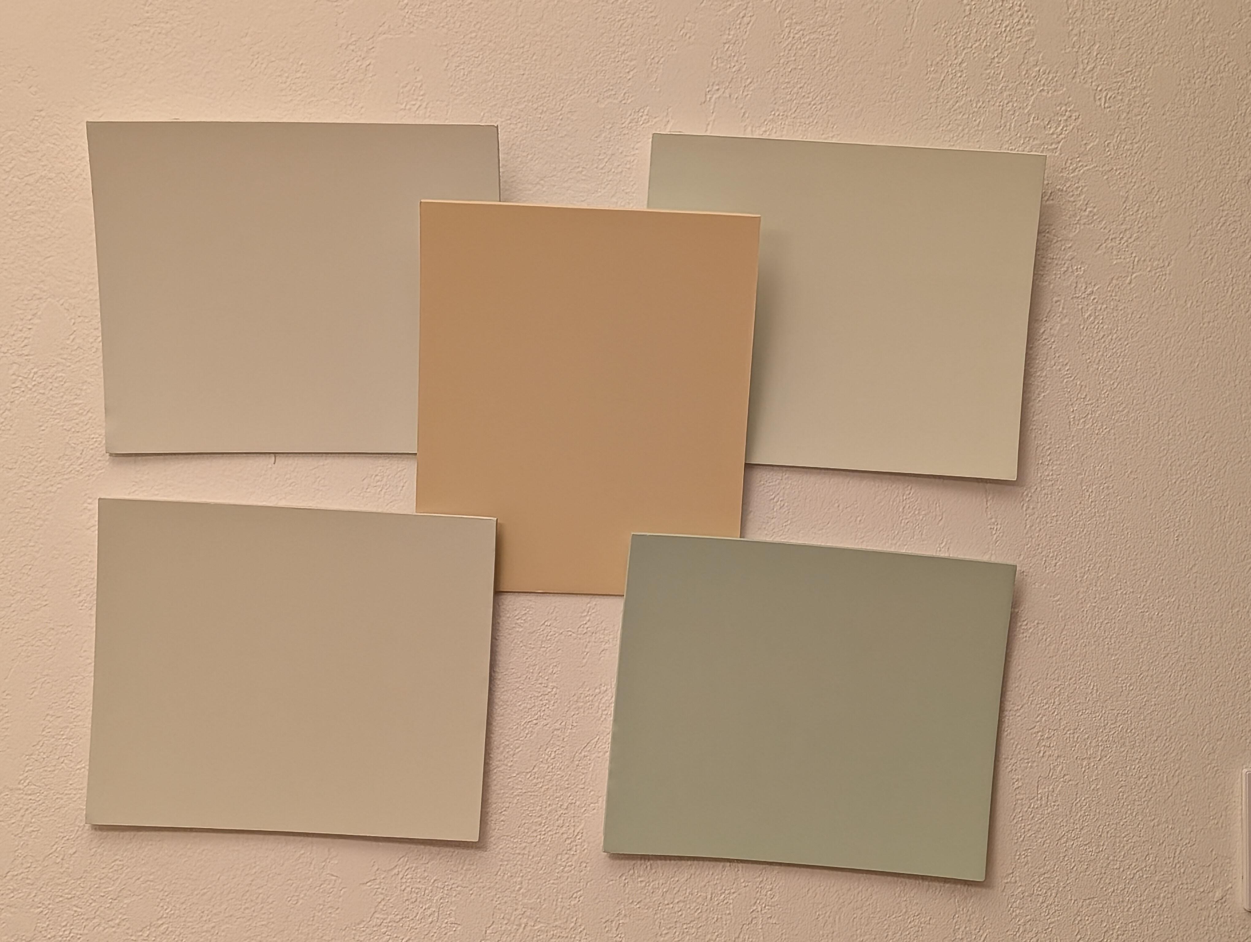 If Only AI suggested "Saybrook Sage" "A soothing aloe hue cooled with a splash of gray." Was rejected as "too dark". Manually eyeballing color swatches etc ended up with candidate short list of 4. AI allowed me to place some candidate furniture in a picture of of one the bedrooms / potential office, and with the right prompting and sample "digital dollops" ... WIth the original walls it looks like The Candidate Colors chosen were Budding Green CSP-790 https://www.benjaminmoore.com/en-us/paint-colors/color/csp-790/budding-green Calming Aloe 533 https://www.benjaminmoore.com/en-us/paint-colors/color/533/calming-aloe Stolen Moments 477 https://www.benjaminmoore.com/en-us/paint-colors/color/477/stolen-moments Sweet Caroline 478 https://www.benjaminmoore.com/en-us/paint-colors/color/478/sweet-caroline