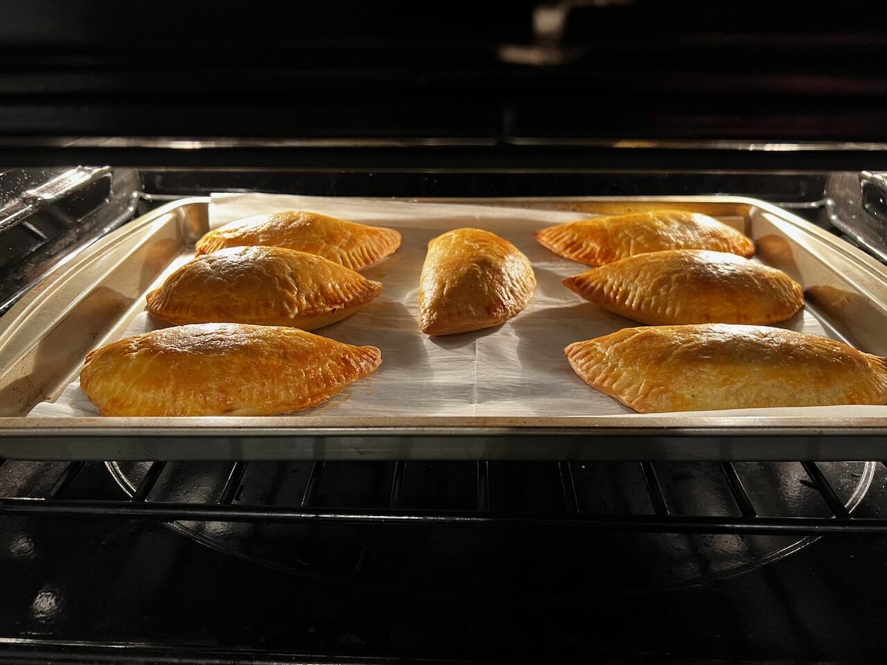 4. Had not made empanadas in a while. Decided that needed fixing so I defrosted some left over carnitas and that was that. Well, first I made a double batch of dough so I could make them more hand-pie sized. This was half of them.