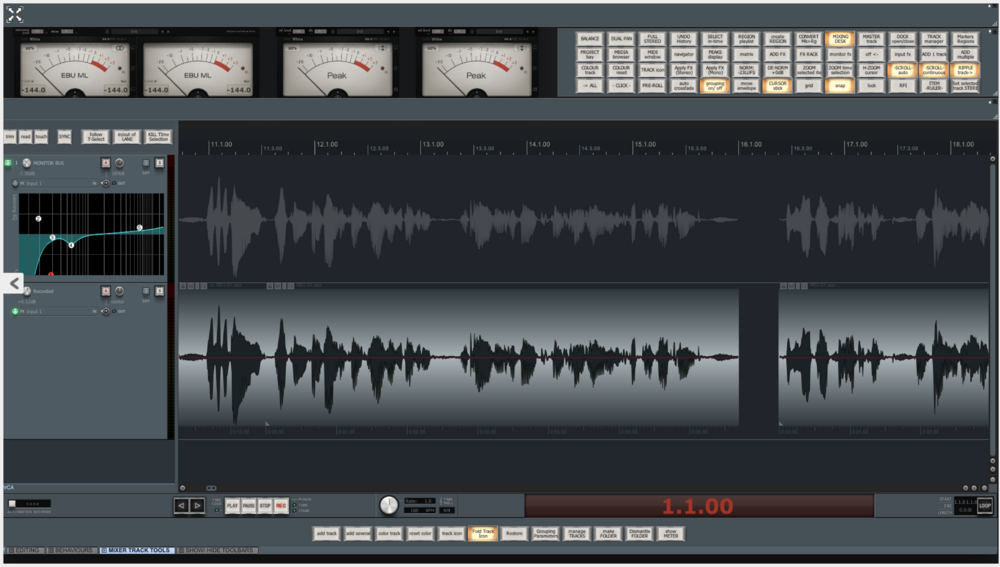After thinking about it, I thought that just saying that Reaper was good for live recording and batch processing wasn't giving it a decent recommendation. After all, it was my main DAW for 4-5 years and there are tons of "pros" about it. Of course, which DAW is best for someone depends almost entirely on what they want to do with it and what I think of it is influenced by my needs. Reaper is pretty close to an open source program so the users have a great deal to do with it's features and strengths. This goes hand and hand with the fantastic Reaper Forum which is full of helpful and creative folks. How it looks and behaves is up to you. It's almost the opposite of Pro Tools in that respect. With Pro Tools, it their way or the highway. With Reaper, you can decide almost everything if you wish. So some of the things I like have to do with layouts. First, you can have up to 10 default layouts that can be switched with a single key command. These "Screensets" can have different layouts for the Mixer, or the Arrange view or anything else for that matter. You can create custom Toolbars with any command/action (thousands) or combinations that you create (Macros) to complete strings of actions that you need to do over and over again. You can create Themes or import one that another user has created and make that your default skin. Some are insanely elaborate. Here's a couple of screen shots of one called Imperial from White Tie. I can't help wondering if some of these guys ever get around to making any music! Some other things that I like have to do with their Piano Roll/Midi Editor. In Reaper you can have multiple, editable modulation lanes for each midi track. So you can have something like a lane with automation for a low pass filter with another lane for resonance open at the same time along with 10-20 other modulations lanes if your crazy enough. You can also install Reaper as a "Portable Install". That allows you to install every file including your preferences for Reaper and all it's included plugins (which are excellent BTW) into a single folder. That means you can install it on a thumb drive if you want so you can take it to another studio, plug it in and open "your" customized version of Reaper anywhere. Well, this just scratches the surface but I hope you get the idea. So, why isn't Reaper my primary DAW anymore? For the most part, it just never seemed intuitive for me. And I like the limits that Logic imposes (I don't get distracted by the DAW when I should be keeping focus on the music).2 points