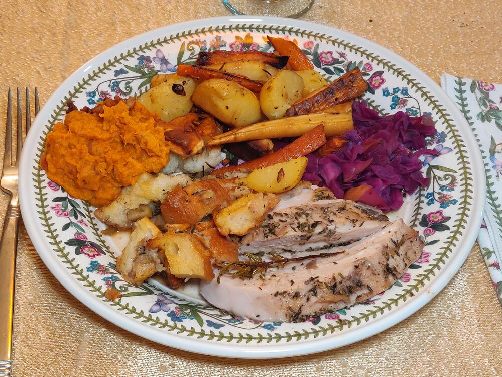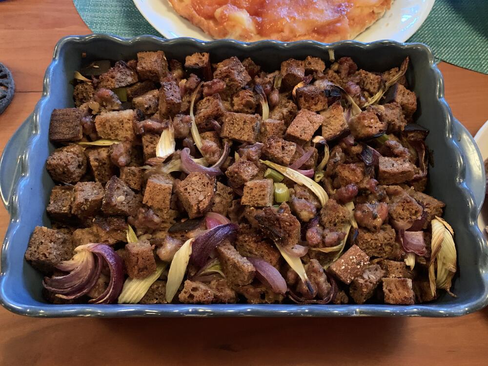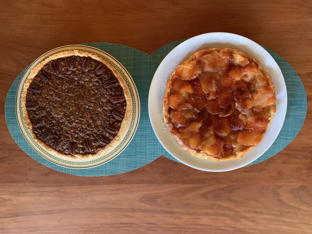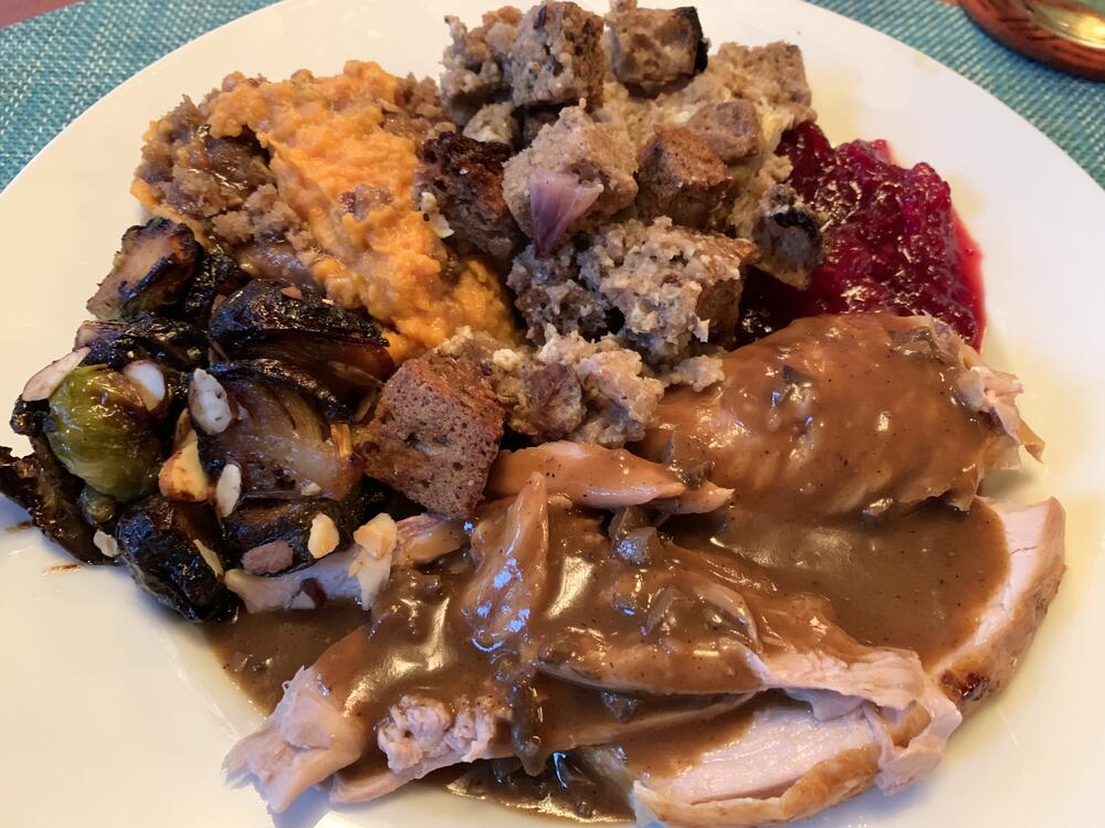 Well, our covid Thanksgiving day is limited to me, Claire, Alden and Steve. The meal we thought was going to be more streamlined has taken two days of cooking and baking, and we're not done yet. Here's the allegedly shorter menu: Orange-ginger cranberry sauce Meeso-Horny, I mean Miso-honey roasted Brussel sprouts Sausage-fennel stuffing Sweet potatoes TBD by The TICE Brined roast turkey Giblet gravy Turkey-bacon-swiss burgers for Alden who doesn't like any of the Thanksgiving menu except dessert Pecan pie Apple tarte tatin (inclufed because Alden doesn't like pecan) Whipped cream So much for streamlining. Happy Thanksgiving everyone! Pics along the way.2 points