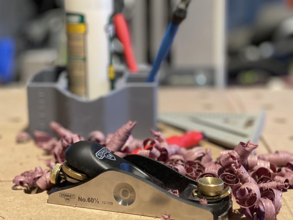 It just sits there. That metal on top will have some motor things to move it around and a spinning thing to make wood, plastic, and aluminum shavings.5 points