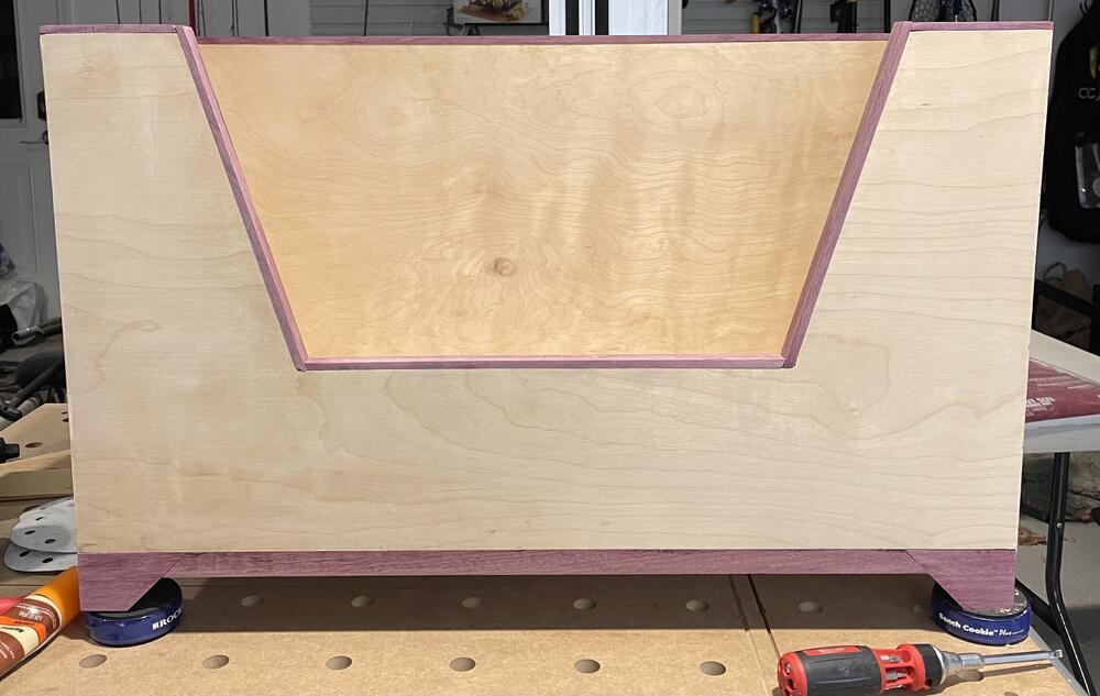Well, unless I find some way to make some Purple Heart wood filler for my screw-ups, I think I am about sanded 80-120-180-220 and ready to wipe on some of this Arm-R-Seal stuff. Need better attention to detail, a better way to estimate angles for the trim and probably to do more accurate 45 cuts as the track saw likes to lean. Trying to force the floor and four sides together on dominoes was not a perfect experience either, I need an apprentice. I also need to write less on the wood, pain to get it all off. Good enough for mid-century modern dog toys I guess.1 point