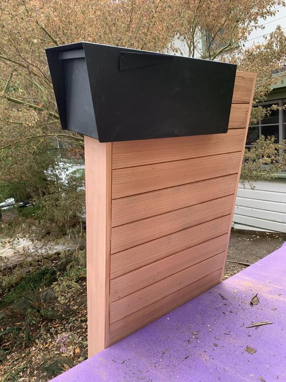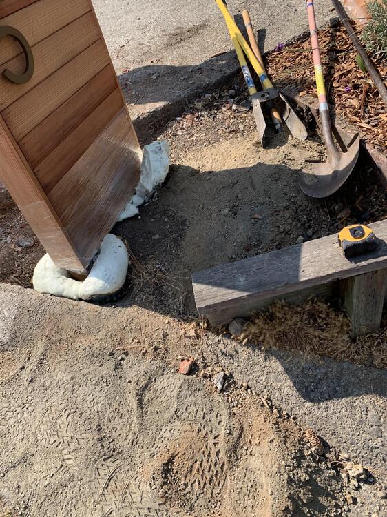 I built my sister a redwood clad mailbox stand Then Steve and I tried to dig post holes in dry, compacted dirt before hiring a guy named Sergio to do that task. We set the posts with a high tech expanding foam product made by Sika that worked great. It is in a bag with two bladders that you pop to combine and then pour in the hole. It works very fast and was set in three minutes. No bracing and waiting for concrete to set.. The best part is that Home Depot had marked down these bags from $10 to $2.38 and when I checked out they were rung up as $0.01 each. Two cents for footings is pretty cheap.1 point