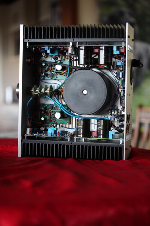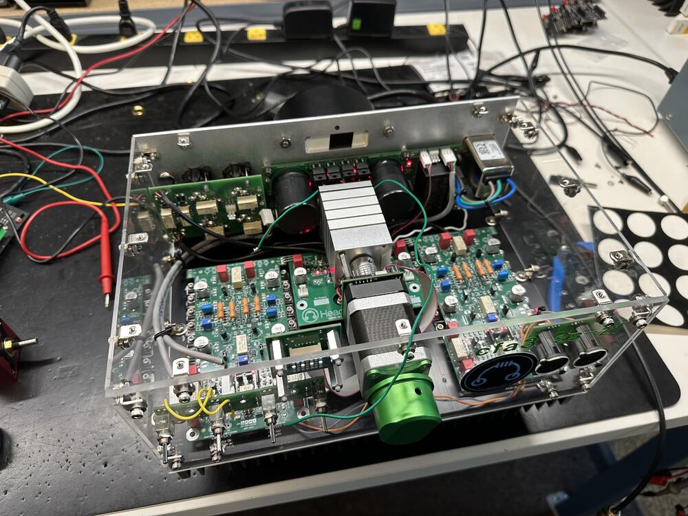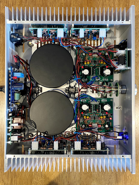 Been working on this for a looong time. CFA3 from scratch mixed smd/thru-hole design. Currently assembled with NOS Toshiba 2SC3381/2SA1349 inputs, NOS MPSW TO-92L thru-hole transistors and bcxxx for the smd. Power consumption 75W no fan. Linear PSU with 20,000uf/63V filter capacitance — custom golden reference regulators. Final dimensions are 12x9x4.5” / 22lb+ the motorized 48 step attenuator w/ remote and display was a last minute addition. definitely interested in finding out the feedback for that, but would want it built backwards for a final design, I think.20 points