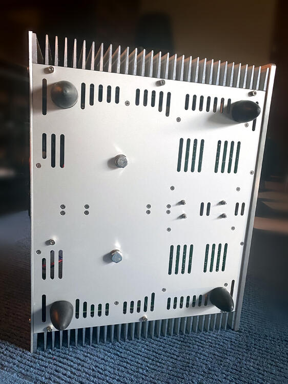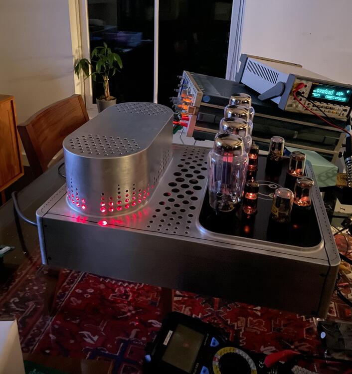 I have been getting back at this..working up to a limited run of these as the STAX SR-X9000 and Audeze CRBN have made that need to happen. But the chassis is extraordinarily expensive and difficult to produce, so I am working at ways to fix that. Also need to put it on the scale, thought it was 45lb but feels more like 60lb haha. It's really not that big of a footprint (13.5x18), but it makes the BHSE look like a toy. Power consumption is 190-200W depending on tubes, with 90-100W of that being heaters. The bottom of the amp is ice cold and the top is pleasantly toasty. The first 3 stages have recessed slide switches on top to switch 6.3 to 12.6v heaters, so common tube types are: 1st: 6SN7/12SN7, 12AU7 and many others w/ 8 to 9 pin adapter 2nd: 6SL7/12SL7, 12AX7 and many others w/ 8 to 9 pin adapter 3rd: 6N6P, ECC99, 12BH7A, possibly others such as 5687 w/ pin-out adapter 4th: Emission Labs 20B-V428 points