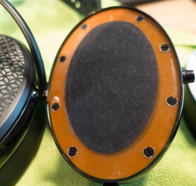 It's been a long week so not a lot of time to sit down and listen to the CRBN but when I've done so, they always deliver. No issues at all like the first set had and they are very comfy for a couple of hours or so. I'll try to sit down for a few hours straight but they are so light and the earpads so supple that I don't foresee any issues. It did take me a while to get used to the more diffused sound stage as I thought they were off balance a few times. Just the different presentation playing with my head... I'll take some more time until my final impressions but how about some teardown pics instead. Now do remember that this set was headed my way and Audeze knew I would tear it apart... so they were nice enough to not fully adhere the earpads. That's why they have the paper backing on them. First shot showing the gorgeous carbon shells. Earpads off showing the baffle and the nylon screws which secure the baffle to the back. The 3M adhesive they are using for the earpads is very strong so these are no easy headphones to get into. The earpads are very thick and some of the nicest I've ever seen so I don't foresee having to replace them anytime soon. Another shot showing the (phenolic?) baffle. Now remove the screws and the set comes apart, the baffle screws through the earcups and into the back piece. There is quite a bit of foam behind the drivers but it is very open. Audeze were shooting for a fairly high damping design so this makes sense. Here is the frame with the foam in place. That small dot falls off easily which is good, that means no adhesive in place to make a reflective surface inside the foam. The back cover is a very nice piece and I like the use of fine mesh to keep most things out of the cups Now remove the foam from the picture above and we have the back of the driver. They have gone for connections through the structure to the different elements unlike say Stax who take it all to one point. Nothing wrong with either way of doing things. Here you can also see the construction of the cable which is woven and it feel like it's two triple strands from the Stax plug, up through the cable split and into each cup. I do wonder how much capacitance braiding the cables like this does add to the system (a flat cable always be superior in that regard) but its similar to what Sennheiser do on the HE-1 and Mr. Speakers on the Voce. Far cry better than the crap Hifiman call a cable... on a 18k$ set of headphones though. Another shot the driver free of the earcup. Same thick woven material used for the dust covers front and back. Side profile showing just how thin the driver sandwich is and also its MRI safe roots are evident. Not a whole lot of metal in that, similar to what Sennheiser did with the HE series back in the day. The HE60 was just two pieces of extruded plastic, painted gold and then the mylar stretched onto the frame. Kinda funny to see this approach compared to what Stax are doing with the SR-X, ever more complicated stator designs whose benefits are not quite clear. Last but not least, the very nice plug on these. That is aluminum and then molded plastic... very nice indeed.25 points