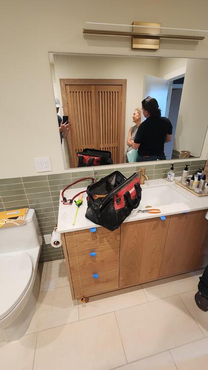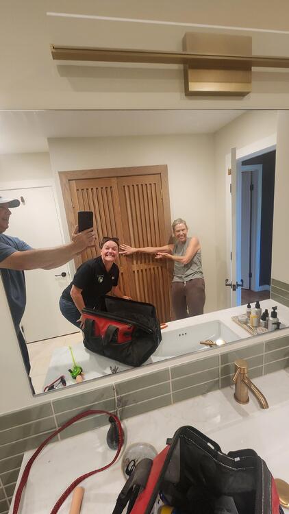 I just thought something funny... These women are Al's Sister in Laws, a lesbian couple. They and their gay carpenter seem so excited to put up closet doors, even though we spent a good portion of time knocking them down. Just caught me as ironic.6 points
