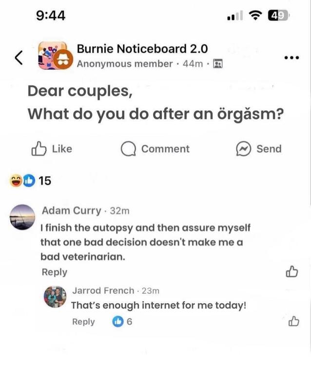 It was, yes!! My brother organized a small flashmob visit to my room that included some of my favorite humans including Bill Arkins who is almost 96 years old, a retired pharmacist who said he still has ways to smuggle dope if I need anything good. Also mentioned that my house is still standing and that he hasn't stolen anything yet. He rides by every day like clockwork on his 1960s style Schwinn bike with coaster brakes that looks practically new still. Best bang for the buck ever. Bill's son-in-law Don, one of my high school classmates, walked in behind him and said, "Oops, wrong room. I thought this was a removal call. I get a lot of those here..." He's a funeral director, so naturally followed that up with "We appreciate your business but we're willing to wait..." for probably the 10,000th time with his typical stoic delivery. There was cake... it was an Office Space sort of birthday celebration but in a good way.5 points