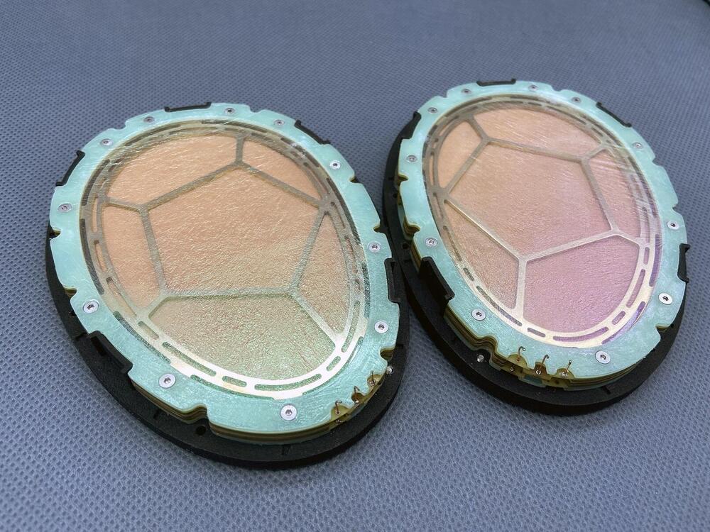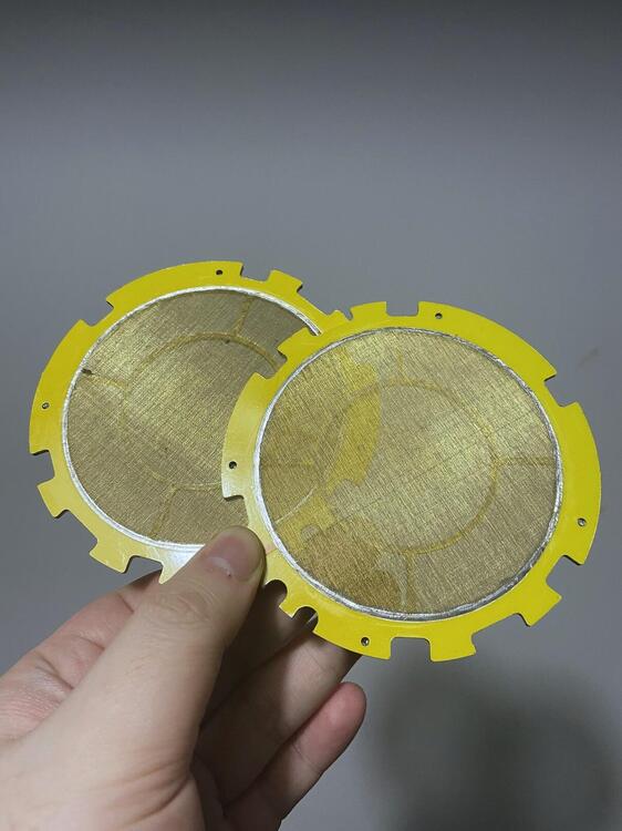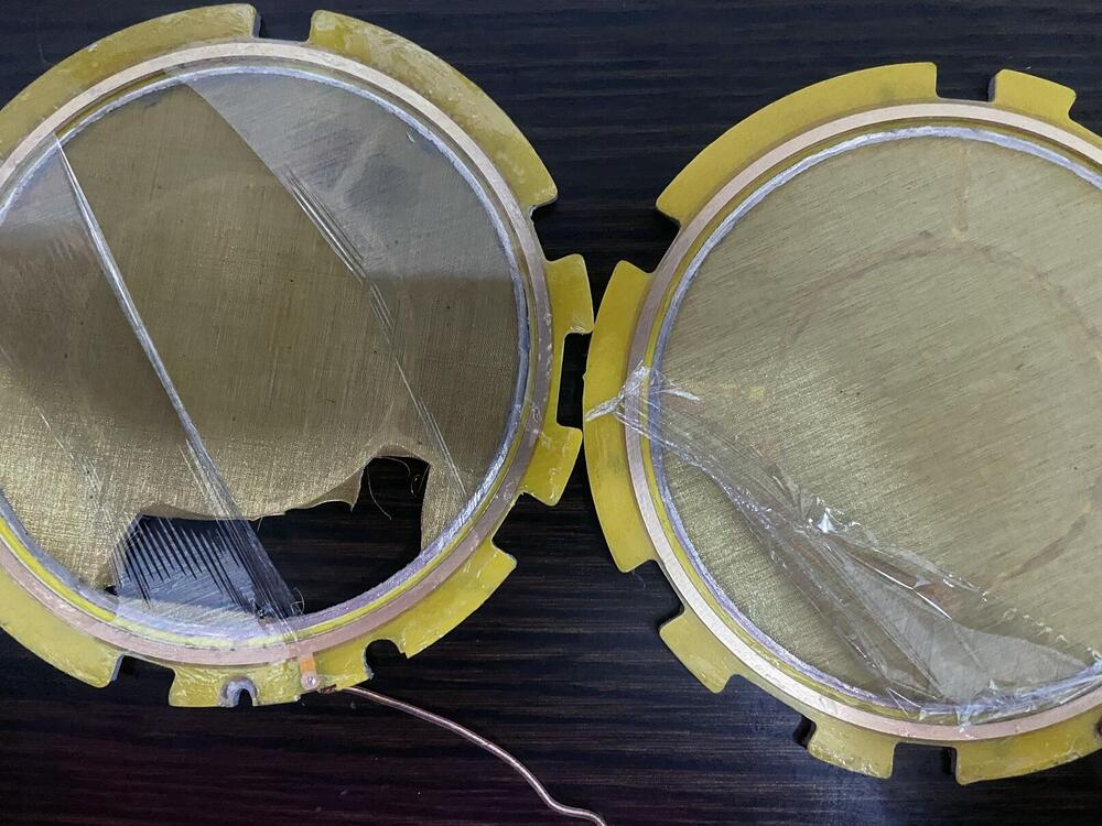It started with repairing a badly damaged shangri la jr driver 2 years ago, I almost rebuilt the set from the diaphragm to the stators,and of course the dust cover😦 The first thing I discovered is that the 'nano-technology' used by hifiman actually comes from the covering used by indoors aircraft model enthusiasts,the name is OS film and it is still available on ebay or https://www.indoorffsupply.com/shop/os-film-25ft-roll-1 the driver of the hifiman estats is completely glued which is similar to the early stax lambdas, but hifiman glue is significantly worse...after opening the driver i found that they only use OS film for their dust cover, the diaphragm is another PET film ~ a little bit thicker but with much better strength. In order to repair the diaphragm, I found a seller on Alibaba who can provide samples of Toray PET film with thickness below 2 microns at an acceptable price,and use the inner tire stretcher to stretch the film like any other diy estats ,Then test it with a 10" subwoofer and minidsp umik-1 to find proper F0. conductive coating is another serious problem,I've tried quite a few methods including antistatic agents like licron crystal, ANTISTATIK100,floor cleaner,carbon-based coatings such as graphene, and alcohol-soluble nylon, even tried nano-silver wire solution and metal evaporation...Some of them are sensitive to humidity, some arcs,some are ridiculously expensive, some have uneven surface resistance distribution, and some are sensitive to temperature changes. Yah~ finding the proper conductive coating is the most difficult part especially for a layman. unexpectedly, I tried to search for hifiman patents, hoping to find something useful... here's a patent showing that they used some kind of metal oxide nano particles as conductive coating for their estats. emmm,very interesting...🙄 By consulting with chemistry professionals, I decided to try a solution called ATO (antimony doped tin oxide), there are many antistatic agents I have used before have ATO ingredients though. I got some ATO alcohol solution at concentration around 10~15%, it works really well, and coating appearance is somewhat identical to hifiman diaphragm! The last thing is to repair stators. hifimans probably use #150~300 brass mesh and solder their edges to a 2mm thick aluminum base plate PCB board, then glue the rest of middle part. I've tried tensioning those brass mesh with embroidery frame and manual screen stretcher,but it is not tight enough to stretche brass mesh in this way, the mesh itself is too strong to tighten it up... then I found some brass sieves with different meshes on taobao and these machined copper screens are perfect for making DIY mesh stators... after everything's ready,i desoldered OG brass mesh, cleaned the copper foil, applied low temperature solder paste, and carefully soldered the new brass mesh with a heat gun. During the process of repairing shangri la jr, I started planning to make some bigger mesh stator estats... of course,the target is its big brother shangri la SR😈I received a set of the first batch of shangri la sr made in 2016,here is the headphone inside,yap~inherited the tradition of hifiman with such horrible workmanship...😱 however,SR sounds not as technical as the X9000 though,but with more pleasant and passion. SR uses 3mm thick aluminum base plate PCB instead of 2mm on JR version,2 black things in the middle are to prevent the diaphragm from attaching stators,The D-S gap is around 0.7~0.8mm(thickness of glue included) which is identical to JR version,active area is close to 6400mm² ,that is pretty large diaphragm size for a commercial product though,but less 5300mm² of area on stator allows air to pass through. I tried to use the 3mm FR4 board as mesh holder at first time,however,mesh stator disassembly is not an easy job...therefore,I changed to use 1.5mm brass plates as the mesh holder and glued the copper mesh to it , brass mesh is also replaced with higher # red copper mesh for more convenient adhension. I spent most of time adjusting the tension of the diaphragm and finally found the tension needed for F0 similar to OG SR ,the clone driver has a slightly enlarged diaphragm(6839mm²) ,0.73mm fr-4 pcb spacer, and everything is screwed to the housing cover. The frequency response of clone and SR are generally similar,but the sensitivity difference between the two is about 1.5dB actually,SR is more diffused...clone one sounds a bit more clearer. SR has obvious recession between 1-2kHz,it may be caused by a sealing problem in the space between the driver and the earcup.... It's unlikely to be solved without EQ, but it doesn't sound as bad as it looks from the graphics. one more thing... Every shangri la must have a throne , so I made one for my mutation🤣29 points