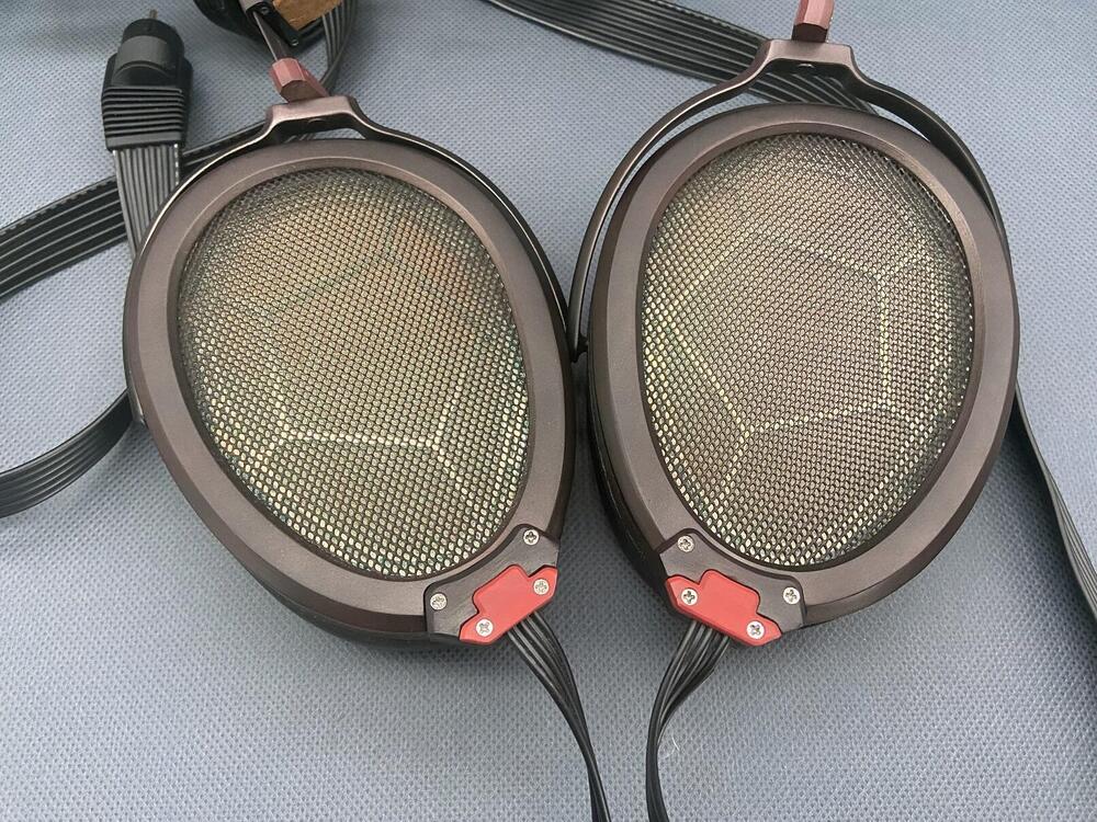 I posted a Chinese version of this article several months ago and now I translated it and put it here. I guess some people here will be interested. I hope you like it. Actually I have some more articles like this pending but I just don't have the time to write it up. --------------------------------------------------------------------------------------------------------------------------------- It all started about a year ago that a second hand sr-omega popped up in the local community. From time to time omegas show up on markets around the world but this one is different: an omega with 007 drivers installed. When the drivers are replaced, such omega drops its value to a fraction of its original. The seller listed it for 48888 RMB initially and sold it for like 20000 + at the end. When I first saw the listing, the first thing that caught my attention are neither the price nor the 007 drivers but one accessory laying aside, which is a pair of dead drivers I have never seen before. At first sight I know that it’s a prototype, a true unicorn that probably only one pair exists in the world. I am so curious on how it sounds and how it compares to 007 or 009 or the original omega. I messaged the seller right away and after some persuasion and explanation that I can give this driver a next life, I got it at a reasonable price. And it has become one of my biggest regret that I didn’t also purchase the omega itself that time, otherwise I can put it back into the place where the drivers belong to. Here is the driver itself. From this driver you can see several innovations made by Stax that has never been seen in other Stax models before it. The diaphragm is identical to a normal omega but the electrode is totally a different creature: copper plate similar to lambda sig etc. but much more refined. Over different regions of the electrode the thickness is different. The thicker copper comprises of the # pattern skeleton to give the rigidity while the thinner copper is perforated. You can see the same topology on 009 and 009s where they claim to have the MLER welding technology employed on the electrode. But this omega prototype electrode is in one piece and just as thick as a credit card. Furthermore, they rounded the edge of the perforation like what Stax does on 009S. Stax even make a sectional view illustration graph on their 009S promotion leaflet. Such treatment helps sound to radiate. To me it’s really impressive to see some characteristics of a flagship model today on a 30-year-old design. But Afterall it’s a prototype. It does have some problems: this electrode is too thin to give enough rigidity and prevent bending. They are curved to 5 o at most. Moreover, the area of attachment between the frame and the electrode is too small. It just peels due to aging. I see such defects in some modern designs too. Although its reasonable to have these issues because its 20+ years old, it does reveal that the one who designed it is not thoughtful enough. Perhaps that’s why it was never released to the market except the one on my desk. Besides the defects the design has, the driver itself is at a very bad condition. The drivers have been exposed to the external environment, so dust gets onto everywhere. The one who does not properly seal the package probably has never imagined that this driver will be repaired. It’s a pain in the ass to make the driver dust free again, especially when they are on the very fragile diaphragm. Normally I don’t accept requests to repair an exposed driver and I will give a new quote to clients who send me an exposed e-stat without telling me in advance . But I own this driver and I can bear the risk so that’s OK. The four electrodes are bent in different direction and magnitude as well as having detachment and failure of epoxy. Taking it apart and bent it manually is the only way out. It takes a lot of skill to bend a bent copper plate. Like you have to apply a certain amount of force on the copper and then you check how you have bent it by eye balling or a ruler, and you repeat this process a dozen times on one plate. You make it worse if you don’t know how. The most challenging part of it is that how much you bend an electrode actually affects the sound pressure on one side of the driver so at this point you just have to guess. I have neither the tool nor the file of the design, its all hiding in somewhere inside Stax’s archive library. At most of the time repairing a e-stat is more challenging and troublesome than making a new one. Aging will just make everything a mess and sometime you have to wipe the ass of someone who does not make the design good enough to withstand usage. Solvent removes dust and grease on the driver. It gets much trickier when it comes to cleaning the diaphragm. Effectiveness of a method to clean the diaphragm is an issue when there is just too much dust, not to mention the risk that you will break a diaphragm by puncture or sketch. At the end I decided to clean the diaphragm with solution. Although it will damage the coating, it means nothing to me as I can recoat it anyway to replace the old one which is probably damaged anyway. Cleaning done. They took away the dust screens so I have to prepare these as well. Last Step: assembly, the most important part of all steps. This several hours of work determines how long a driver can last before imbalance or noise occurs. Its my duty to make sure every edge and surface inside the driver is dust free. If not, dust will eventually get onto the diaphragm at some point in its service life and short the electrode and the diaphragm. Practically if the pollutant is much smaller than DS gap 0.5mm then its fine. All these procedures are done in a dust free environment. Soldering work Omega adopted a spring mechanism to connect the bias supply to the diaphragm. It is shaped like a tuning fork and it is odd (photo credits to audiohobby .pl ). I tried to make one but it just can’t grip firmly. A