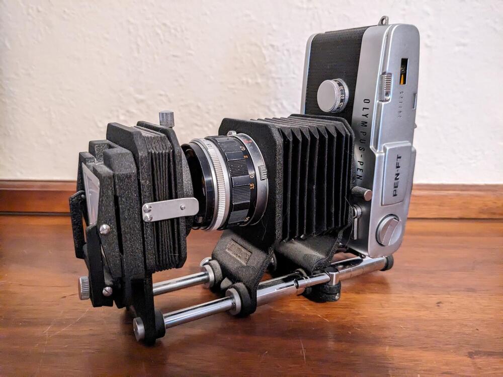 While we are on the subject of useless camera formats - I long ago got rid of nearly all of my collectable camera gear (the Graflex was a gift, received subsequent to that purge). The one piece I kept was my Pen FT half frame with bellows and slide copier. Because who doesn't need to convert all of their slides into even smaller slides? -