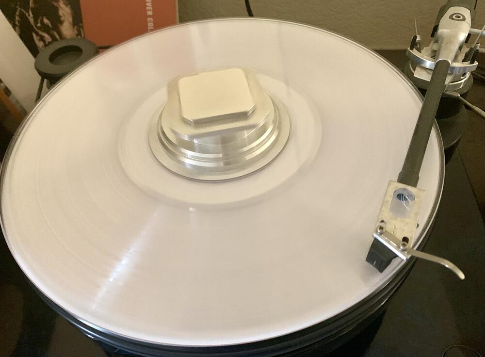 Happy accidents in ordering: clear or white? Compromised clear on white mat this time. Also first vinyl played since COVID showed.