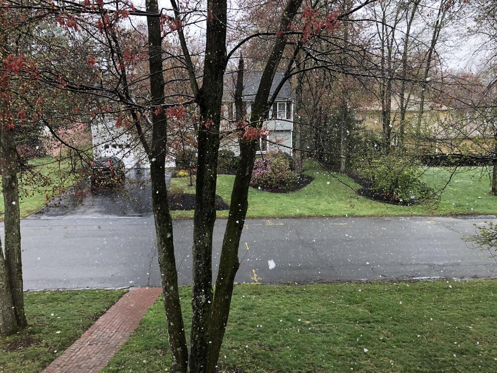 If it wasn't May friggin' 9th, I'd say this was quite beautiful! It won't accumulate though, so we're enjoying from a warm house.