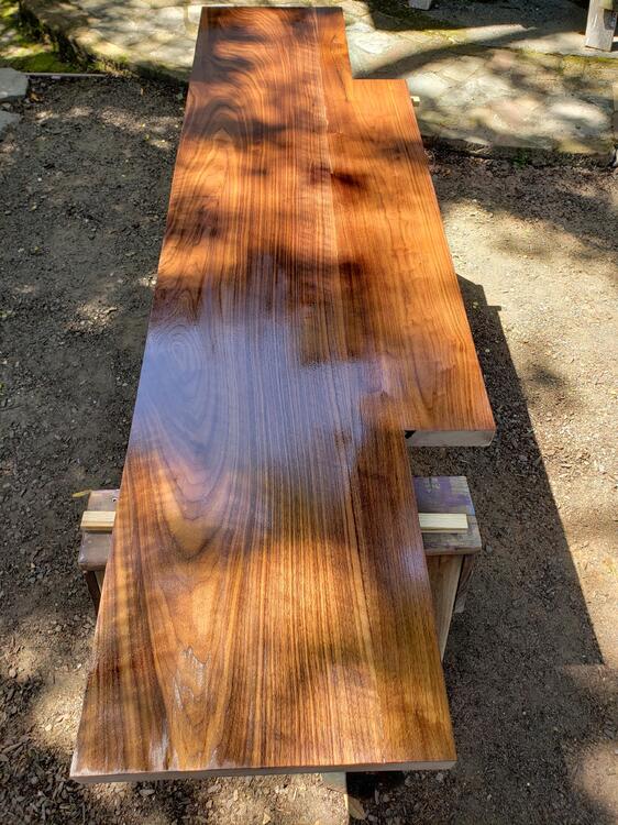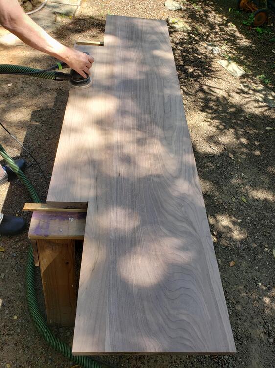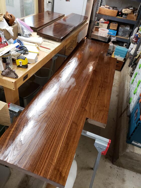 Cutting the bar that seats in a pass-through window, and finishing of shelves and bar. That's not even the good side of the bar. That's the bottom.