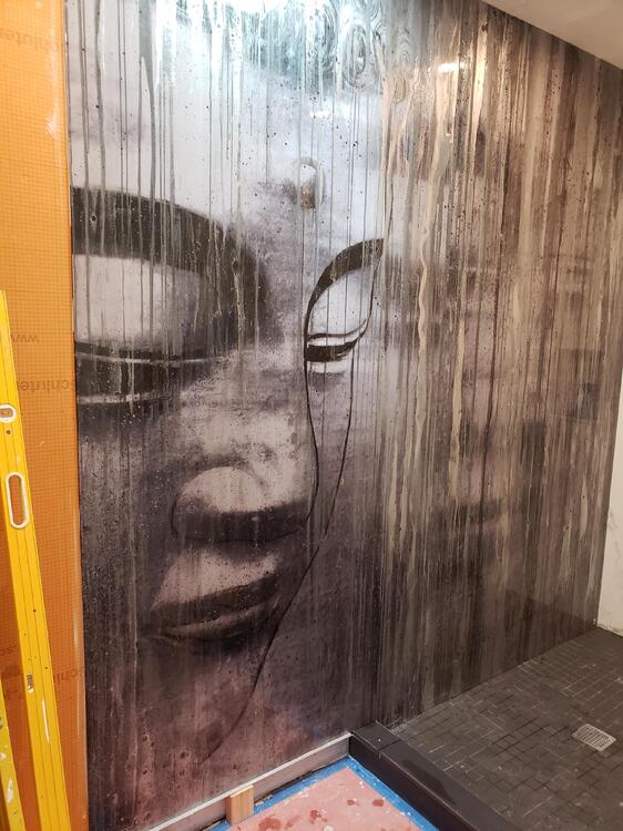 Not really tile exactly, but another fun one was a master bath with Aluminum/acrylic panels by a prominent artist, that I cut and set in the shower. They didn't bother telling me until after I cut and set the three panels, that each panel cost $10,000.