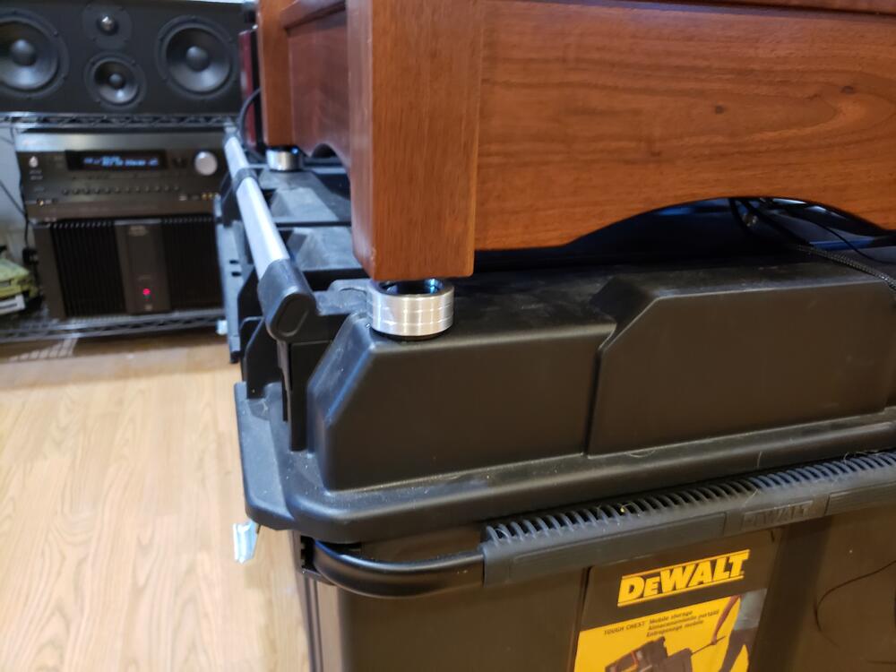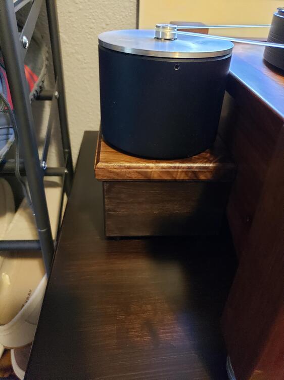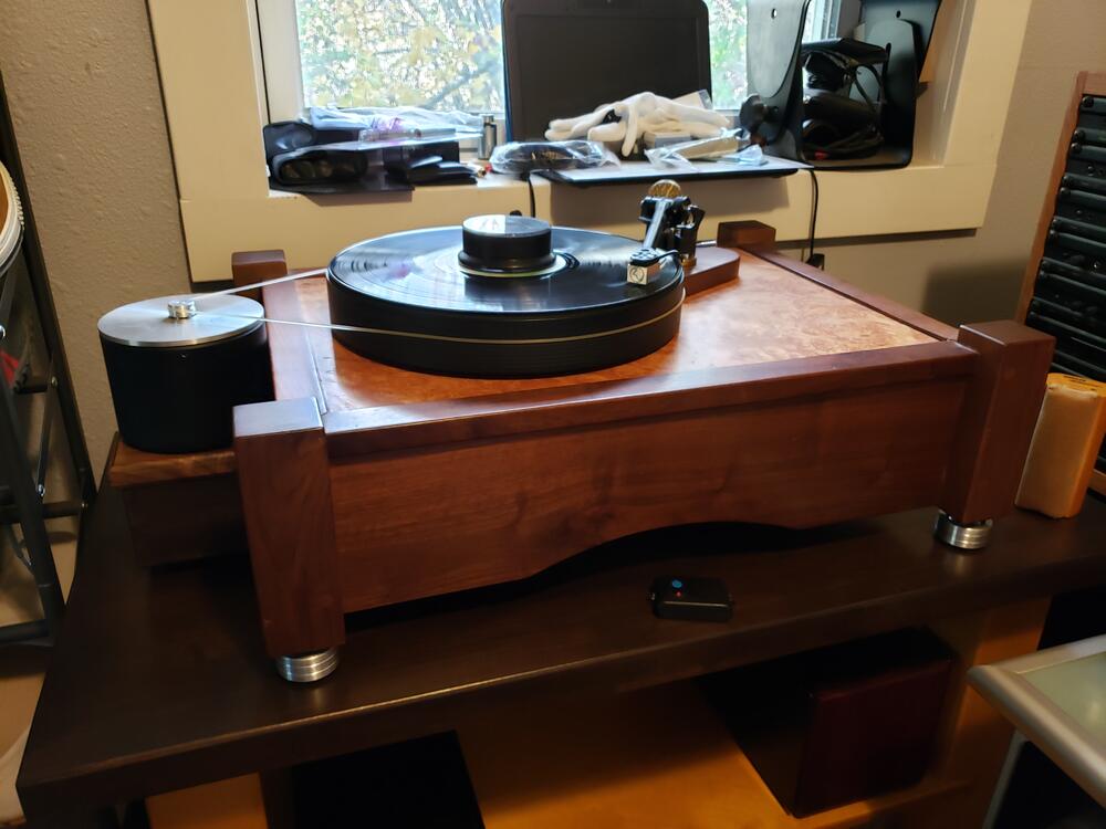 It's finished! Colossus is back in action, and better than ever. I certainly spent more time tweaking this time around. I think it paid off. I have the Hudson HI-FI Bigfeet between the stand base and top, then new isolation feet on the Colossus and I added more shot inside the plinth. It's sounding really full with great bass. Lots more listening to do!