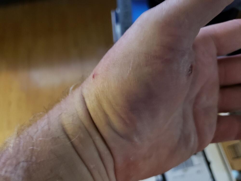 I'm happy to see that I'm still a fast healer. I can count the number of times I've ever had a wound become infected on two fingers. Still slightly sore, but fully functioning. Really just tender when I press directly on the wound. My body makes up in healing what my brain lacks in intelligence.