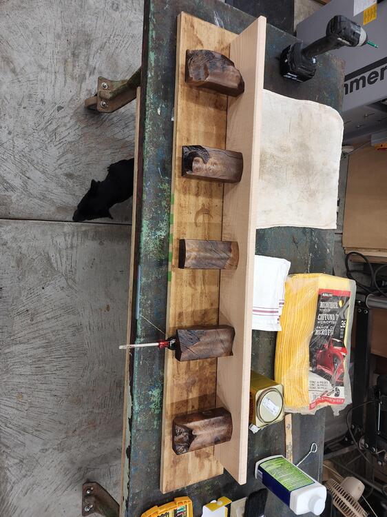 Here are finished pics of my most recent project. And my first headphone stand/rack in well over a decade. Burled Walnut and Tiger Maple