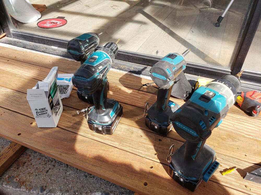 Sure was handy having two sets of drills and impacts, while building an Ipe deck at the bosses house. At certain locations I needed different, shorter screws, that took a square drive and needed a different size drill bit to predrill.