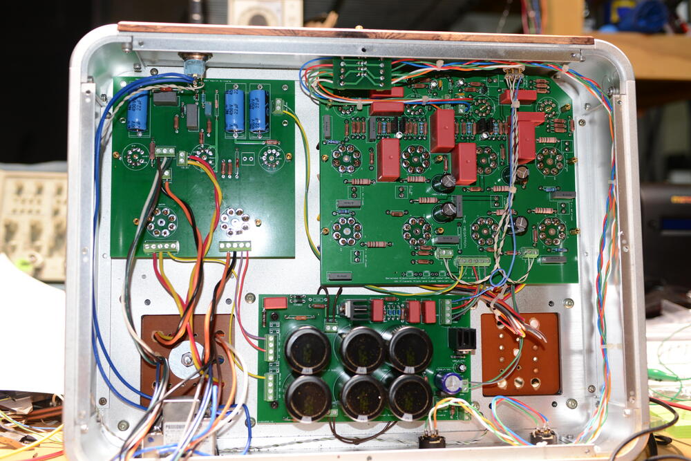 Best place to measure is the scope set to AC and tied to either side of the janzen caps. the side next to the gain tubes is likely to be about +150v dc with music riding on it, probably 15 volts of peak to peak AC when volume is cranked. There should be music on both sides of both janzen caps. If there is still music on the caps when the sound disapears then the problem is the output tubes or output transformer