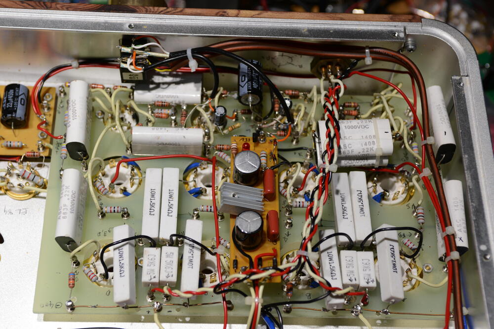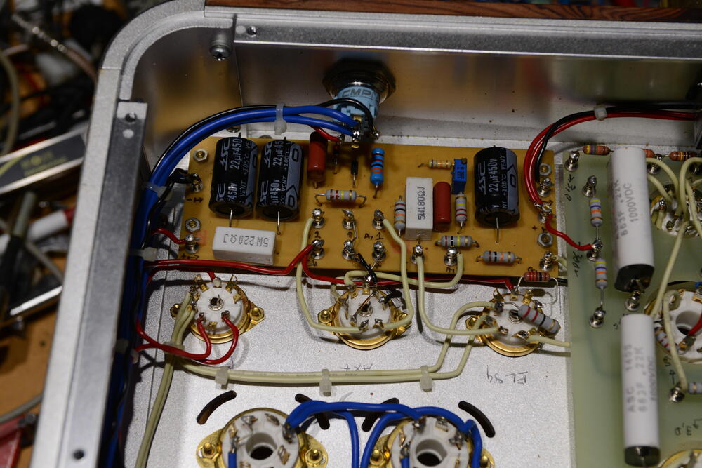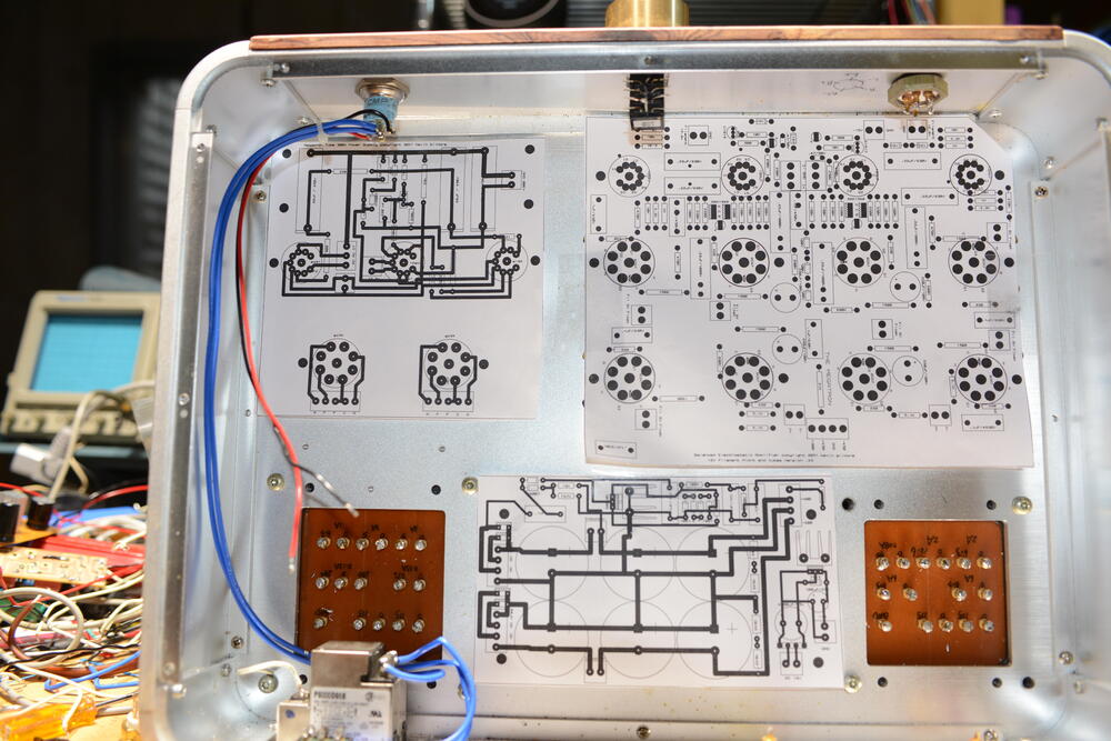 the biggest problem is that the tube sockets are up to .02 inch off in both x and y. really hard to make a circuit board with tube sockets fit into the holes with a top panel that is .35 inch thick. and all the blind holes for the other board mountings were hand tapped and then the holes in the boards were made bigger till it fit. this is so hopelessly fucked. might have to make the holes in the tube sockets much bigger to allow for the slop. No room for a regulated power supply. do want to know how the dremel tool work was done. also corrosion all over the place when the electrolytics let loose. at least we finally have an example that is much worse than the singlepower es2. not sure how to continue. -