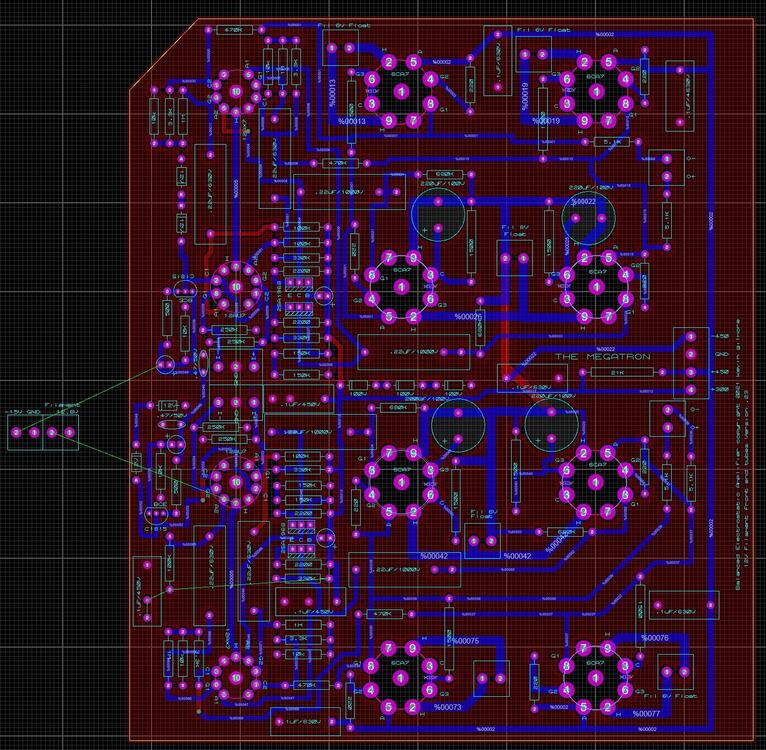 joamats hand made boards look much better than that. posted latest schematic. Does anyone recognize the tube power supply? And the output tube has 300v cathode to filament on a tube rated at 100v. Does (did) it even work? birgir mentioned this earlier. have a look Image-Hifi.com-62015-Viva-Audio-Solista.pdf (audiograffiti.com) so lots of very high voltages, lots of heat and flammable felt and a horrible point to point job. But wait, there is more, my good friend ray samuels and his A10. 5687 output tubes in srpp configuration running with a plate voltage of 500v. So at peak output voltages the cathode of the top tube sees 500 volts with respect to the cathode on a tube rated at 100v. How does this even work? megatronschem2.PDF -