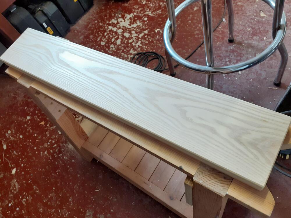 Ash plank, finished entirely with hand tools (planes and scraper). Well, not quite true, I dimensioned it using machine tools (radial saw and planer/thicknesser), and then moved to hand tools. Second pic is paper thin plane shavings from the process. This thing, once it has a coat or two of something to be determined, is a coat rack!