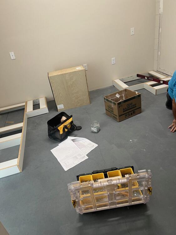 Yep, it's a complete U shape now with corner cabinets. I never updated the drawing. My son wound up doing it in the CAD software they use for the cabinets. It'll be used to assemble all the DIY electronics and work from during the day. I still have 2.5 garage bays just in case I work on anything that's too big for that room. The last bit will be to install an A/C drop and vent. Since it's summer in FL the HVAC guys are hoppin it'll probably have to wait until next month but I'll get there. The countertop will be on tomorrow.