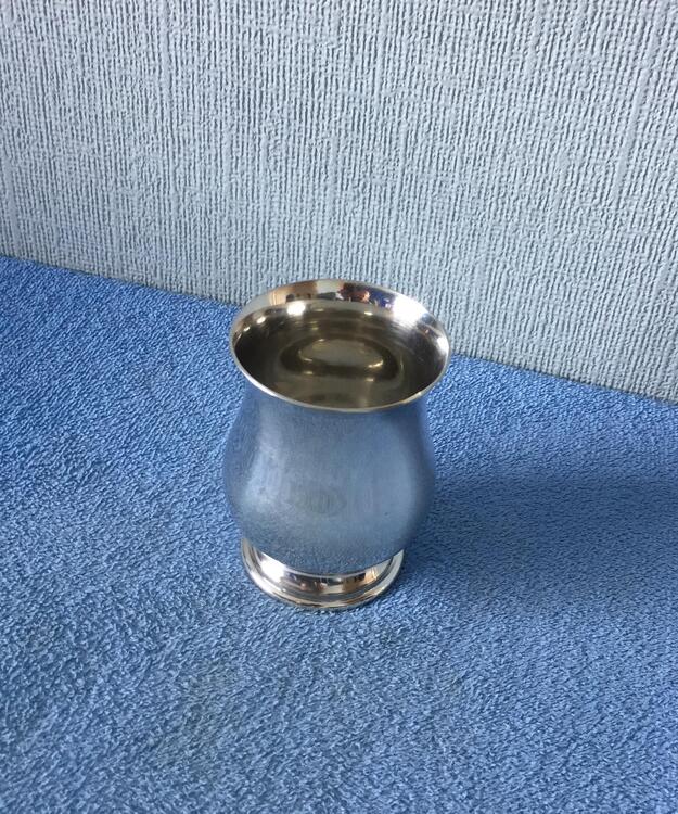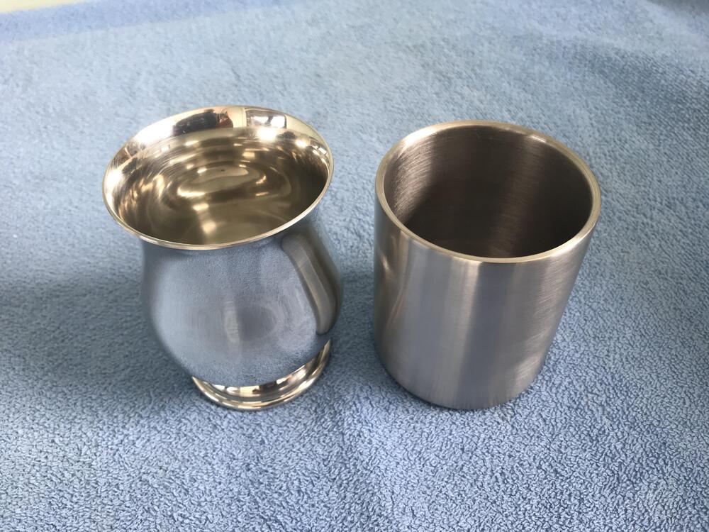 Received that pewter half pint tankard I ordered to use for drinking whisky, but without the handle, and I’m very happy with it. For size comparison here’s a photo of it with one of the stainless steel glasses I use for drinking whisky.