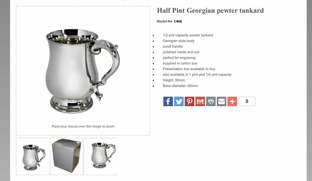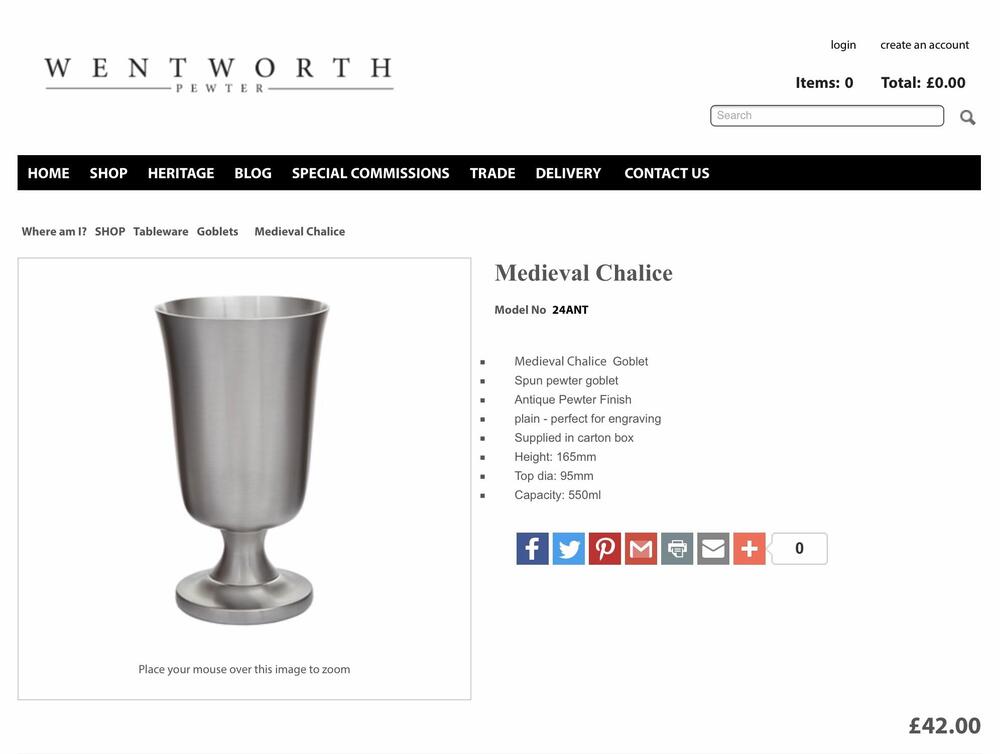wentworth-pewter.com With or without the handle the cost was £38 + £4.95 P & P, although it’s made in Sheffield which is around 35 miles from where I live, so P & P will probably be more for overseas. As well as whisky, I also like to drink stout at home, so decided to get that goblet in the photo from the same place.