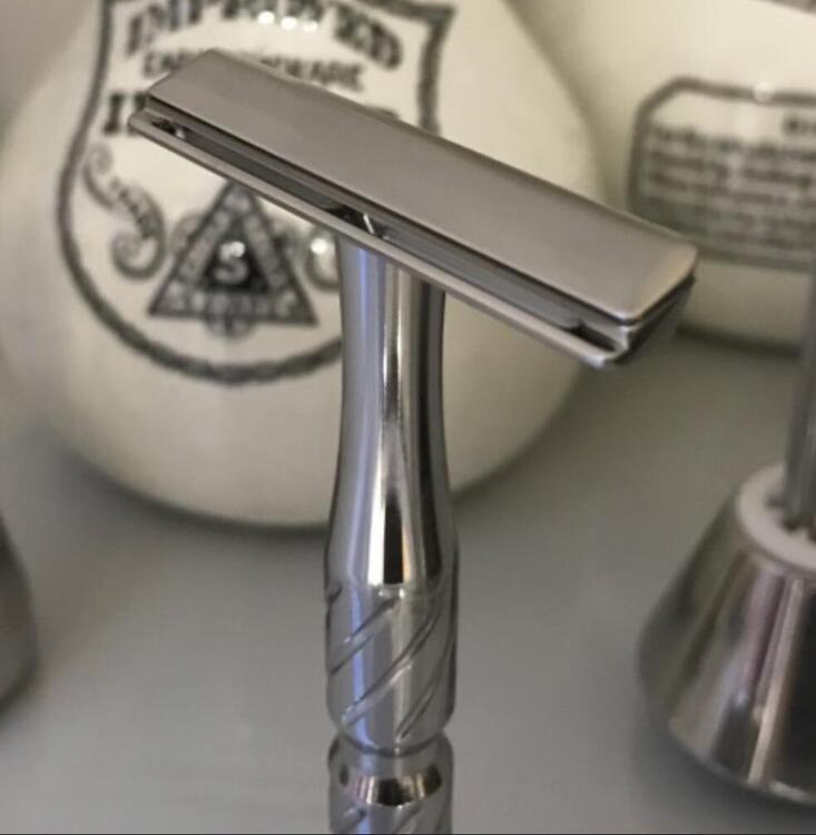 Decided to ask my local metal engineer if he’d do stainless steel handles to my liking for my two safety razors and the Gillette fusion, which he did. So because I enjoy posting photos, here’s how they look. ? Although both safety razors look alike, one handle is thicker than the other and the head on one is higher for a closer shave. -